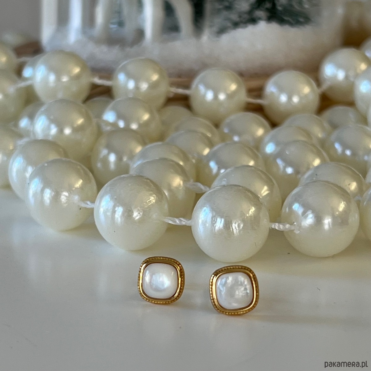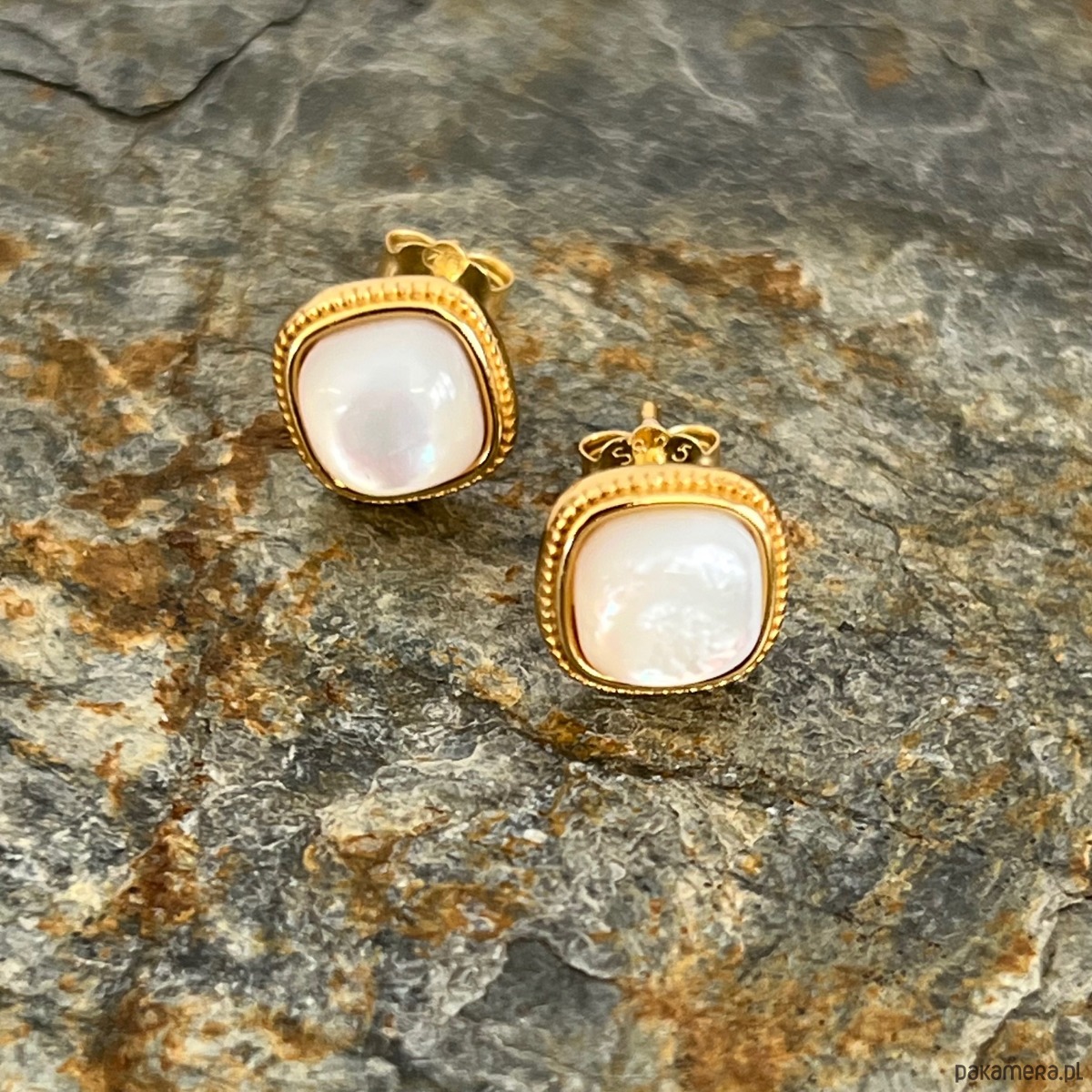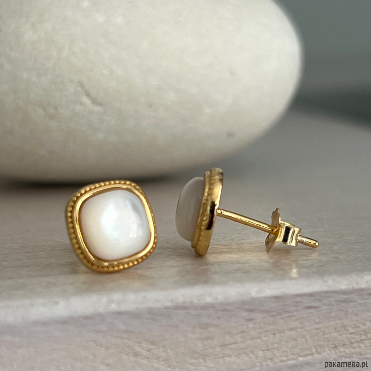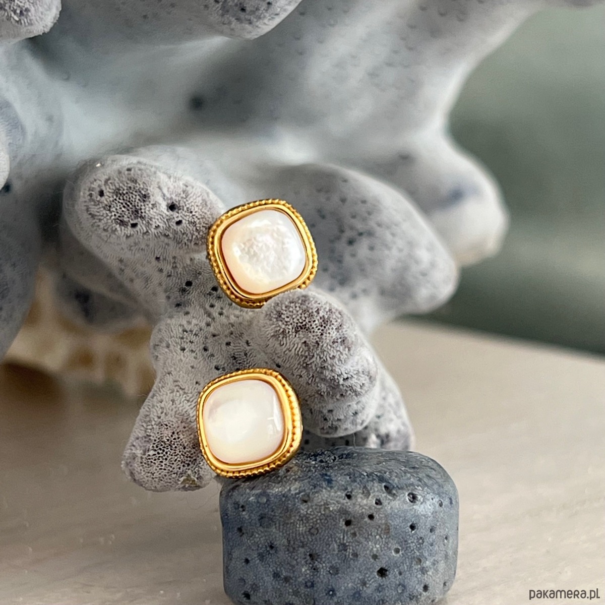 Kolczyki w formie kwadratów z masą perłową srebrne, pozłacane