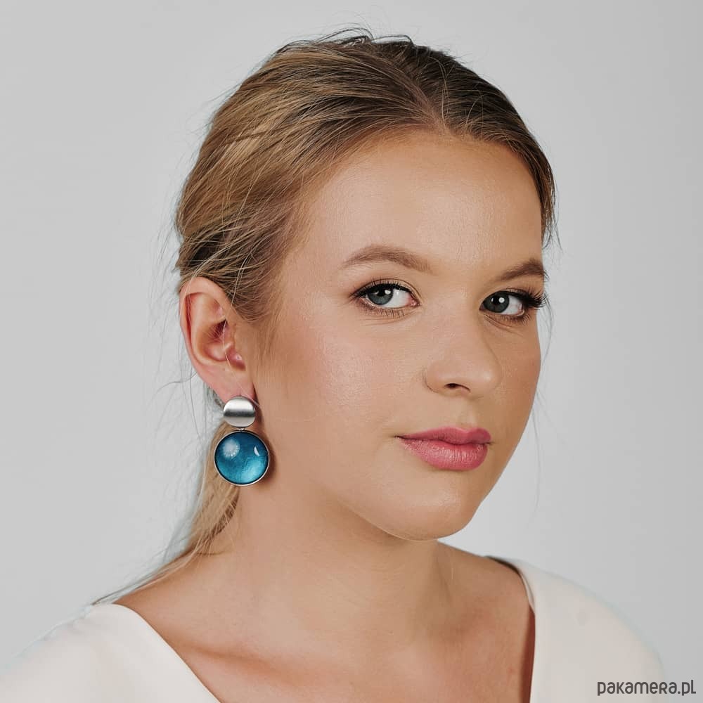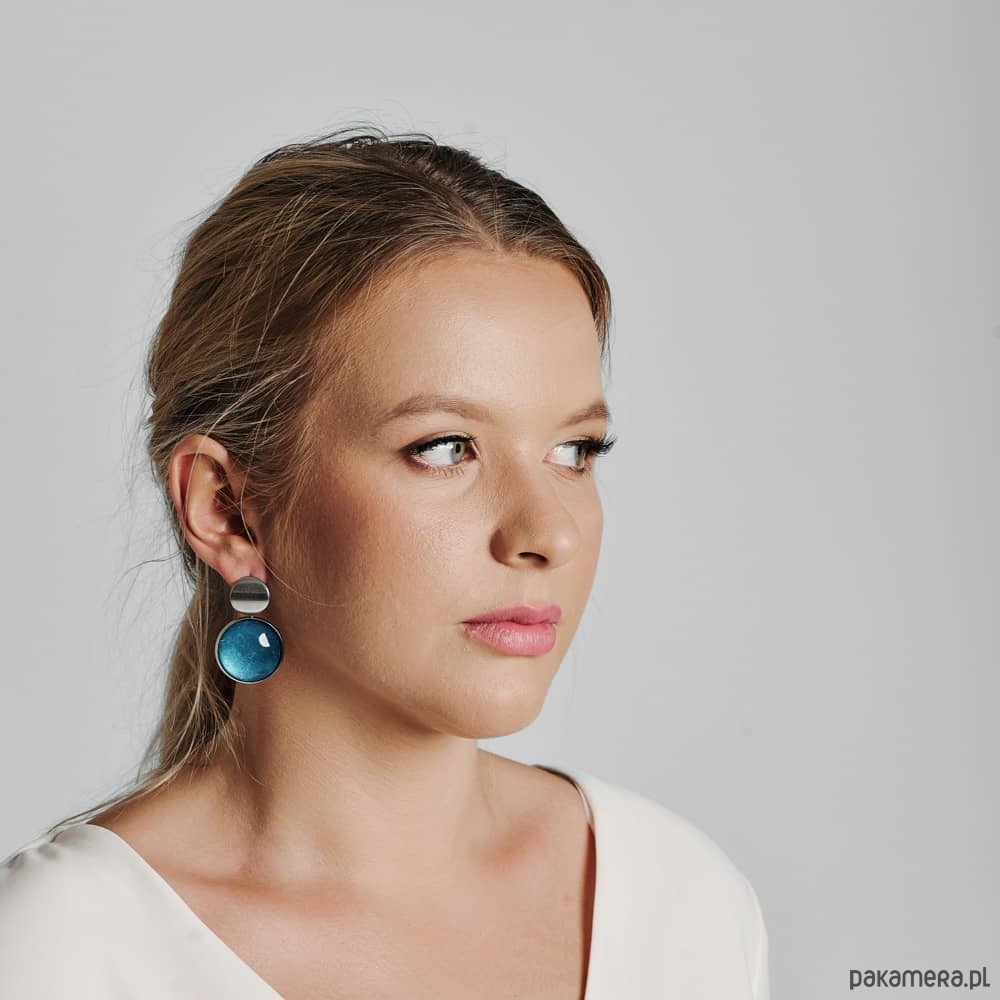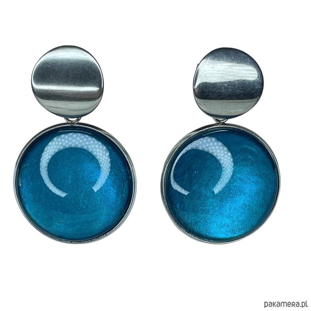 Te pełne blasku kolczyki są częścią kolekcji “W blasku perłowego księżyca”. Kolczyki wykonane są z ręcznie malowanych kaboszonów umieszczonych w bazach ze stali szlachetnej. Szklane elementy zachwycają subtelnym, opalizującym blaskiem, który jest niczym odbicie księżyca na tafli wody. Kolczyki mienią się w świetle, przyciągając wzrok i dodają elegancji każdej stylizacji. Ten dodatek jest idealny dla osób ceniących sobie wyrafinowaną i ponadczasową biżuterię.