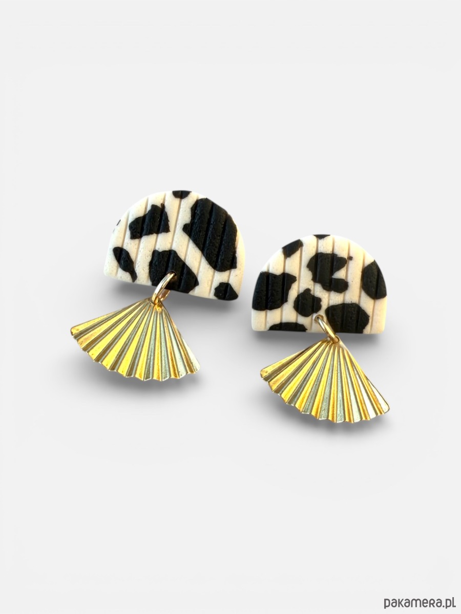 Oryginalne kolczyki wykonane ręcznie z dbałością o szczegóły z profesjonalnej glinki polimerowej, wypalane w piecu i szlifowane w domowej pracowni. Każda para kolczyków jest niepowtarzalna i wyjątkowa. Kolczyki są bardzo lekkie i wygodne, nie obciążają płatka ucha i przyciągają spojrzenia. Zapinane na kółeczko ze stali chirurgicznej.