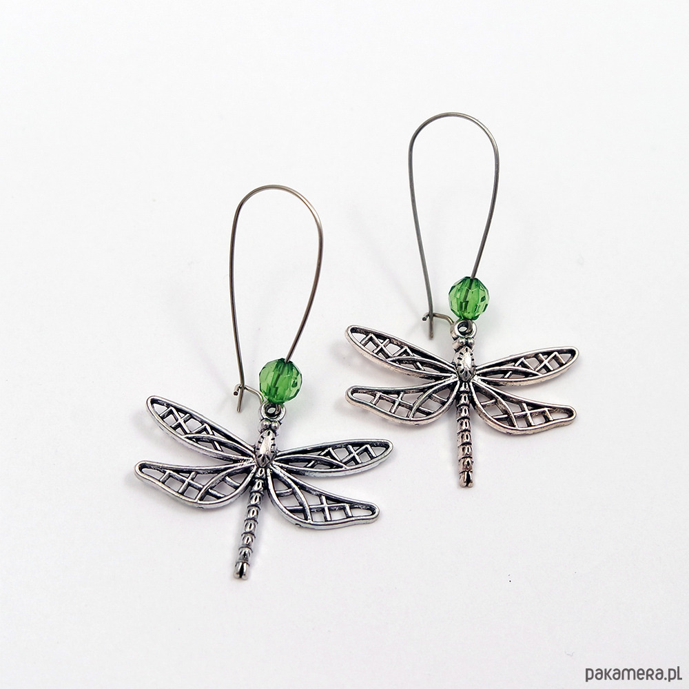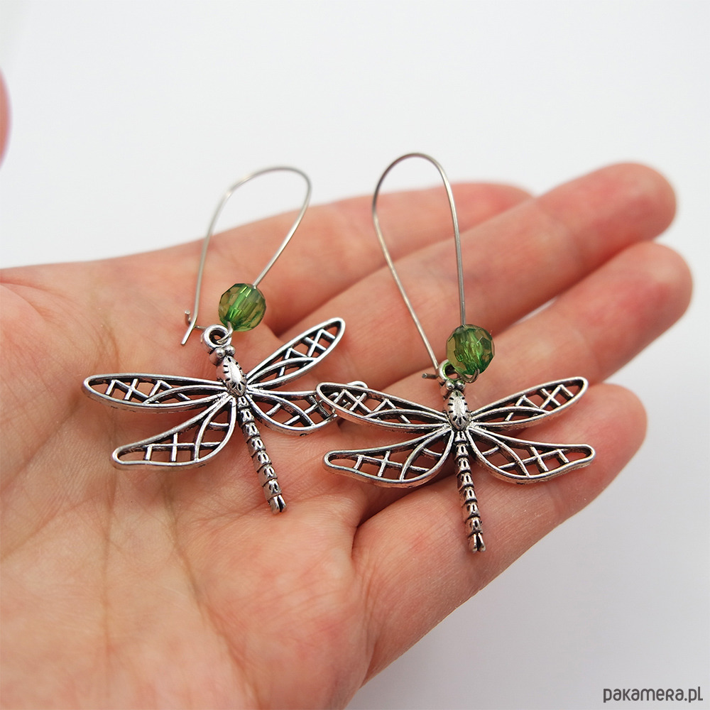 Wymiary ważki ok. 3,5x2 cm. Długość kolczyków razem z biglem ok.5,5 cm.