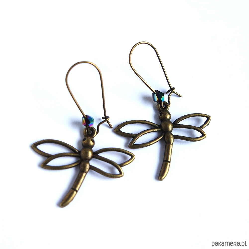 Kolczyki z pięknymi zawieszkami w kształcie ważki.