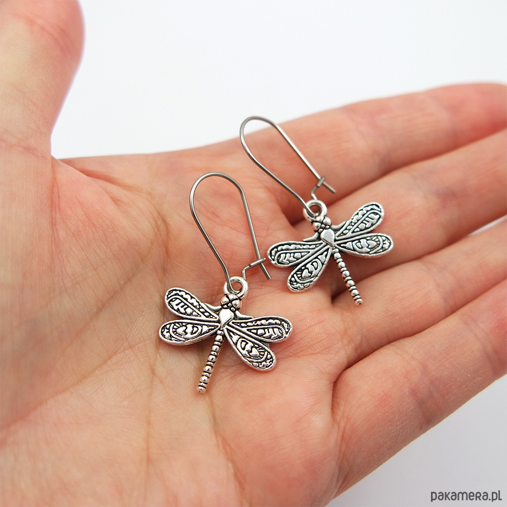 Kolczyki z pięknymi zawieszkami w kształcie ważki.