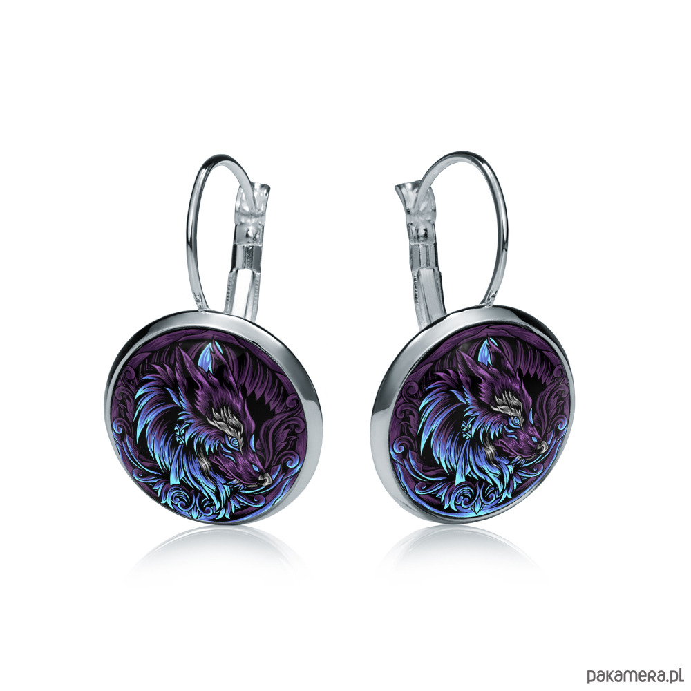 Kolczyki Wilk Fioletowo-Niebieskie Mistyczne Handmade Prezent
