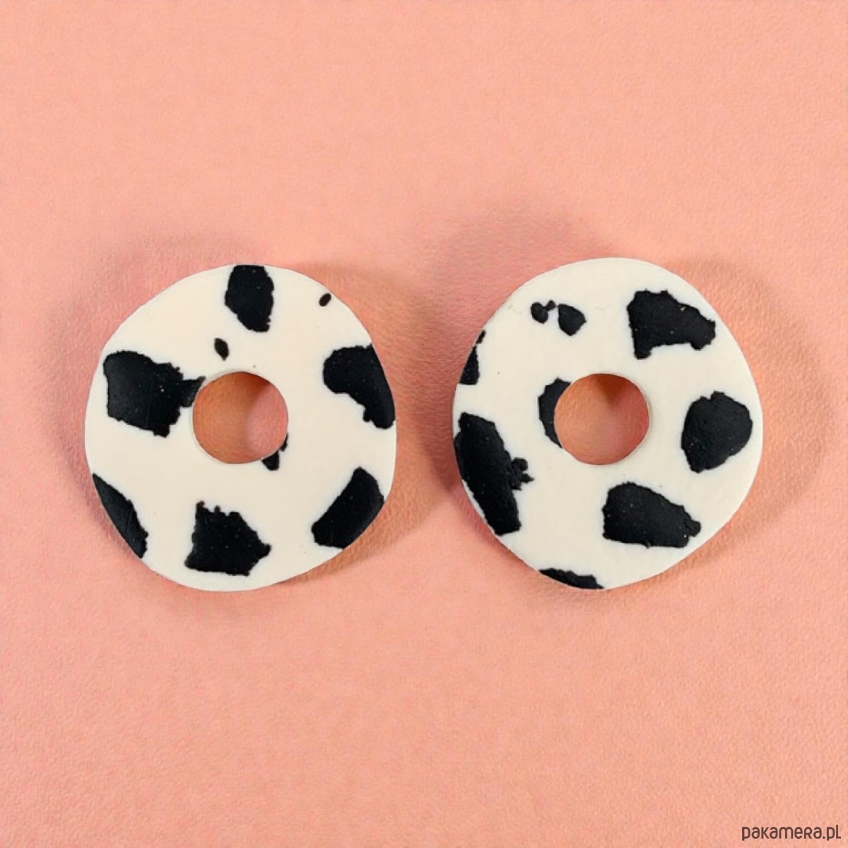 Oryginalne kolczyki wykonane ręcznie z dbałością o szczegóły z profesjonalnej glinki polimerowej, wypalane w piecu i szlifowane w domowej pracowni. Każda para kolczyków jest niepowtarzalna i wyjątkowa. Kolczyki są bardzo lekkie i wygodne, nie obciążają płatka ucha i przyciągają spojrzenia. Zapinane na sztyft ze stali chirurgicznej.