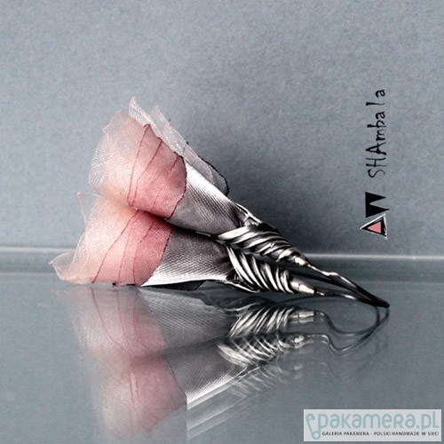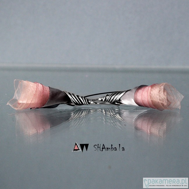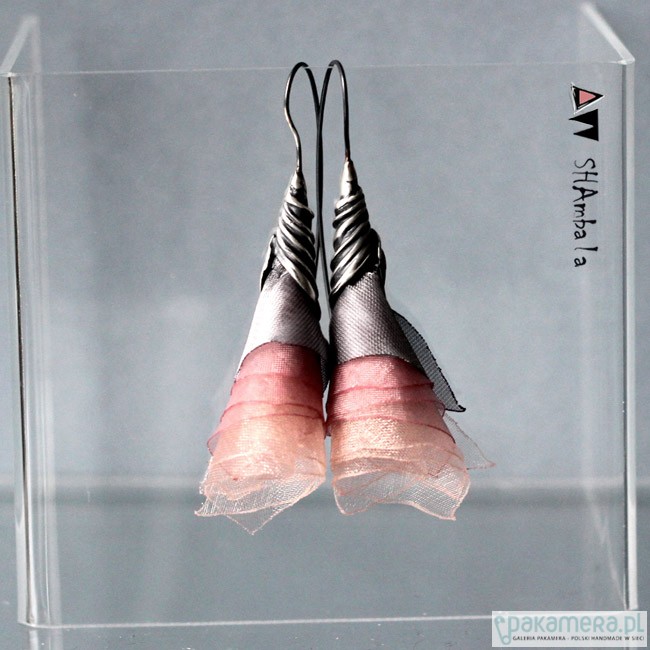 Niezwyke efektowne kolczyki, wykonane z oksydowanego srebra i organzy w pastelowych, ciepłych odcieniach pudrowego różu i srebrnej szarości. Fantastycznie prezentują się na uchu, wobec czego stanowić będą niepowtarzalną ozdobę każdej Pani. Całkowita długość kolczyków wynosi ok. 8 cm. Gorąco polecam:)