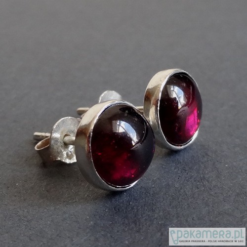 Miniaturowe,wdzięczne kolczyki na sztyft wykonane w całości ze srebra próby 925 oraz naturalnych granatów.Maleńkie kamienie o średnicy 6 mm o wspaniałej nasyconej barwie fuksji wpadającej w kolor wina.Średnica kolczyków 7 mm.Możliwość zamówienia pierścionka,wisiorka. Kolczyki zostaną zapakowane w ozdobne pudełeczko.