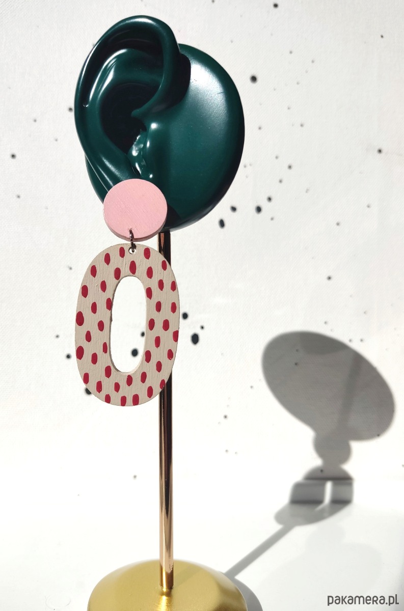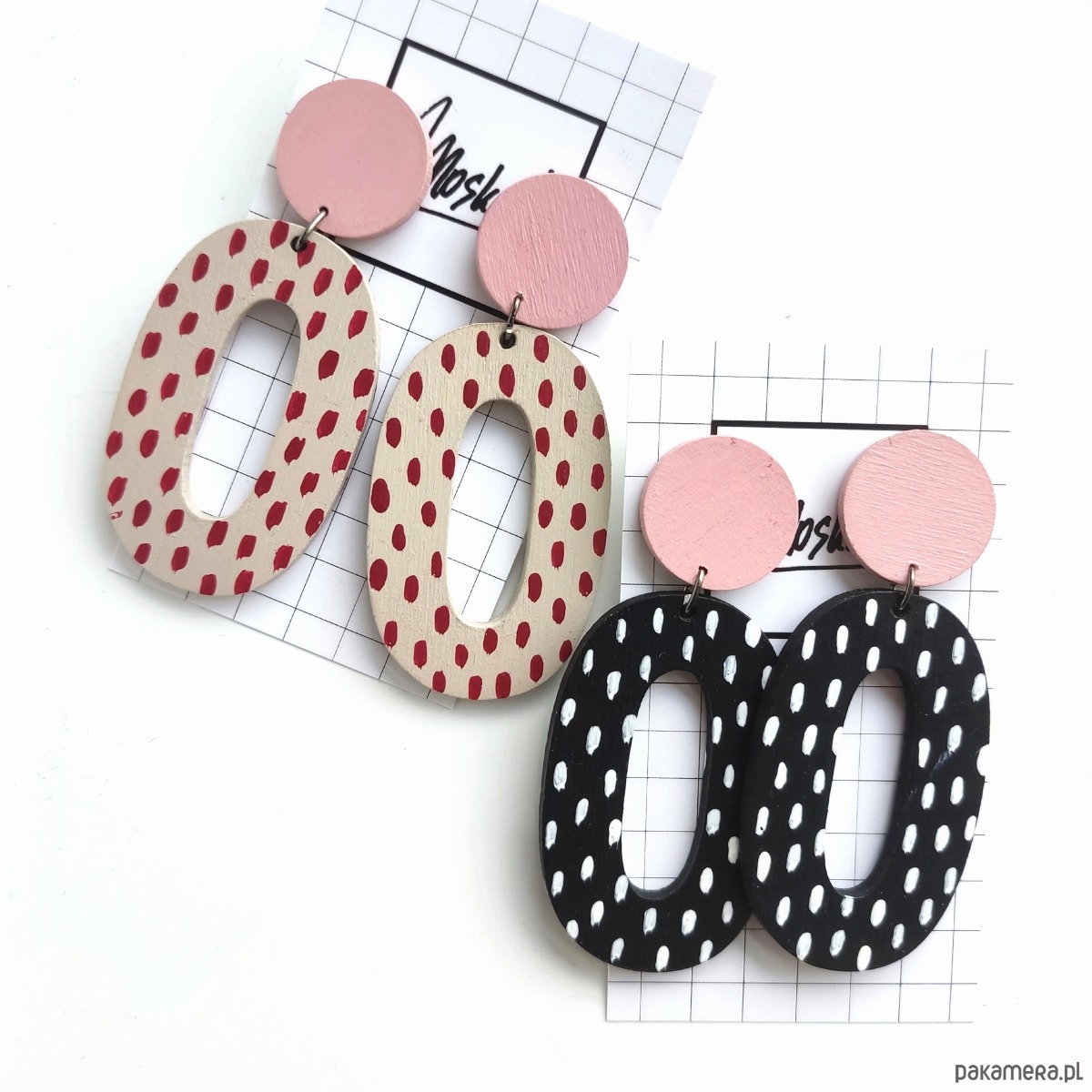 Wielkie drewniane kolczyki - elipsy, wykonane ze sklejki i malowane ręcznie. Lekkie; nie obciążają ucha.