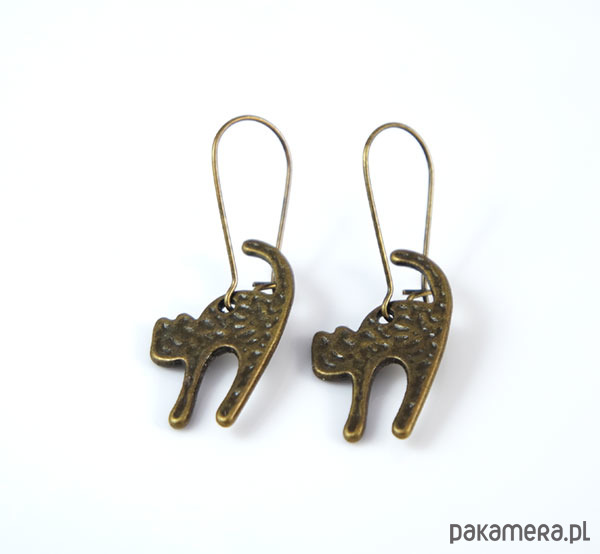 Kolczyki wykonane z zawieszki w kształcie kotka. Bigle zamykane.