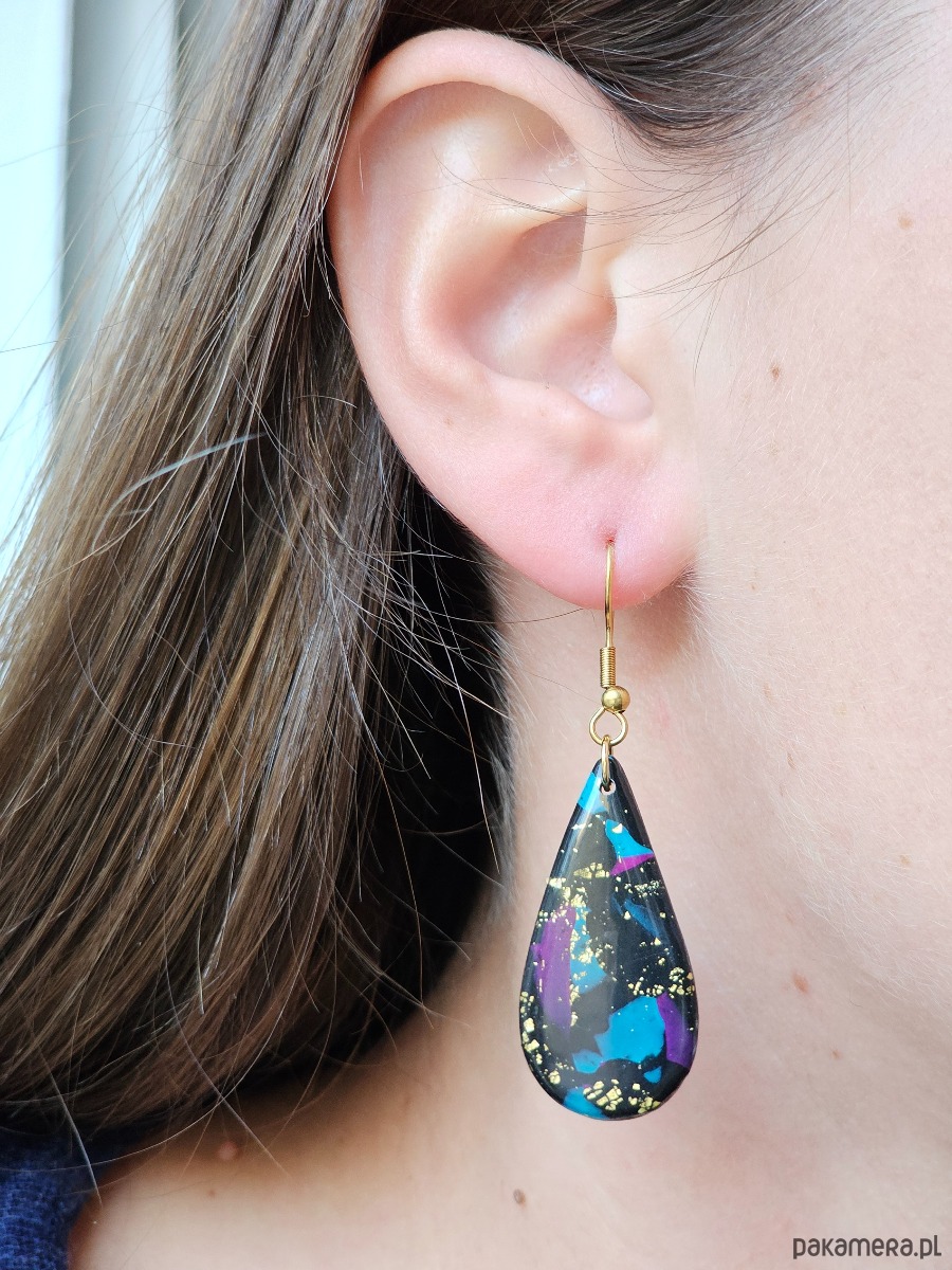 Kolczyki wiszące krople niebo pełne gwiazd z połyskiem