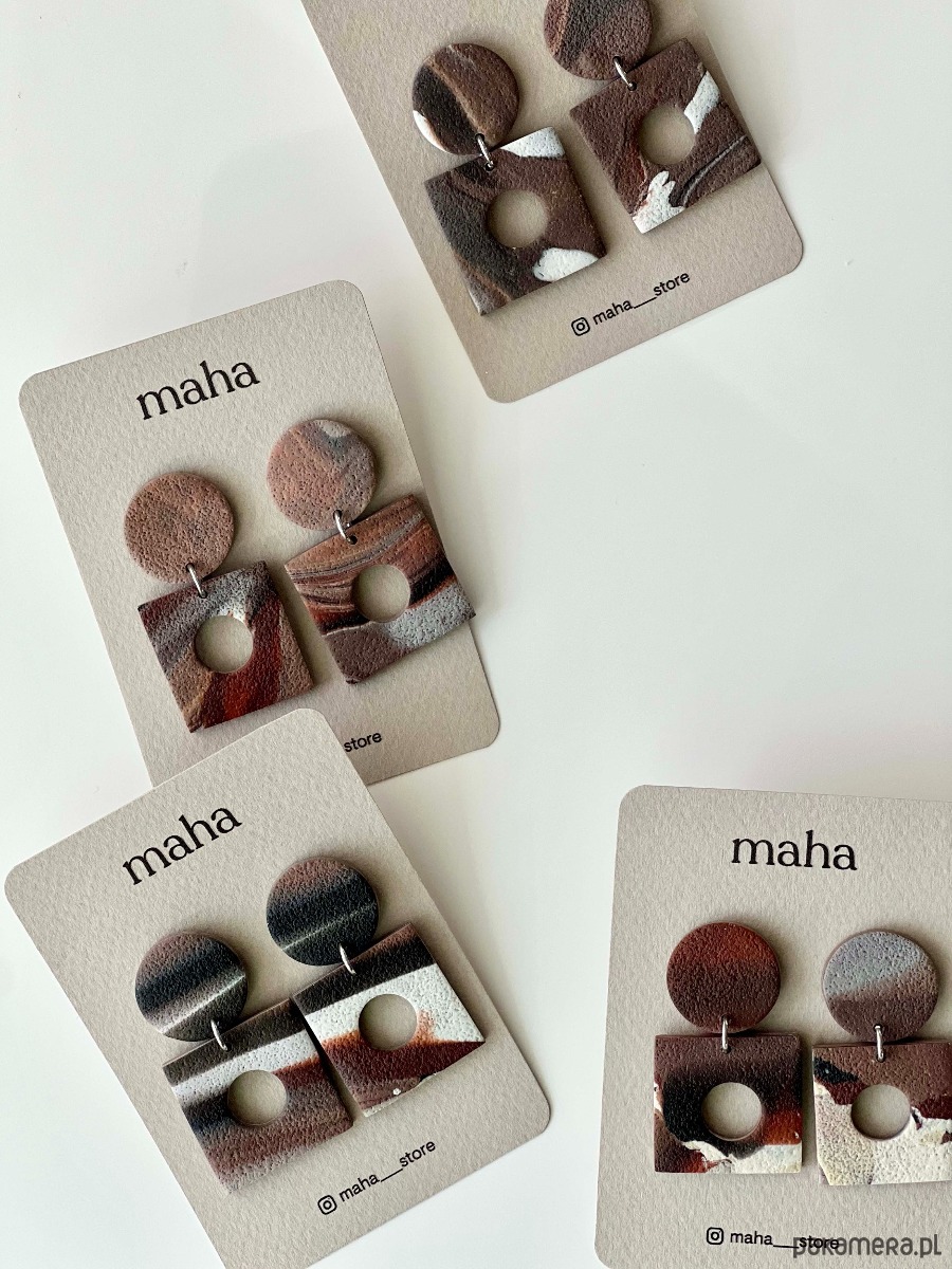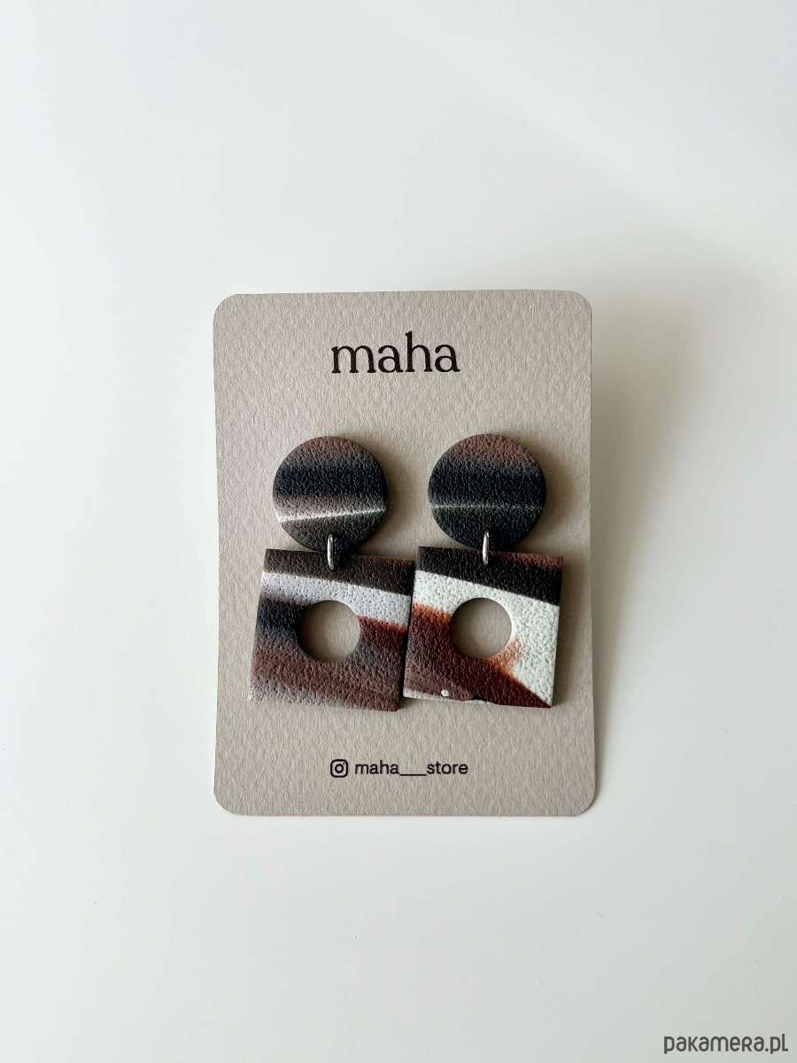 Minimalistyczne wiszące kolczyki z motywem w kolorach ziemi.