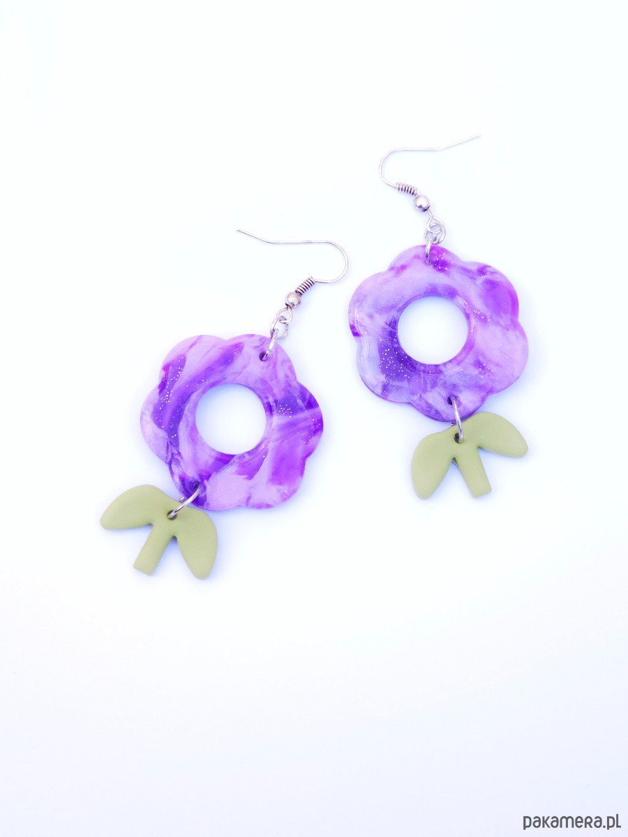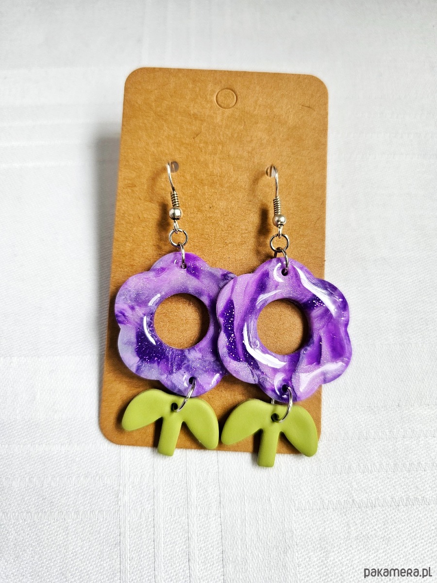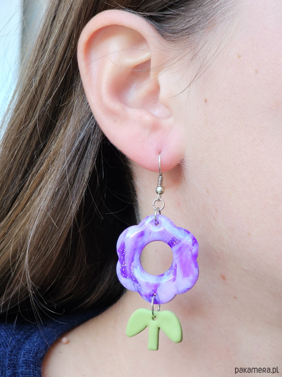 Ręcznie robione, bardzo lekkie kolczyki z masy plastycznej.