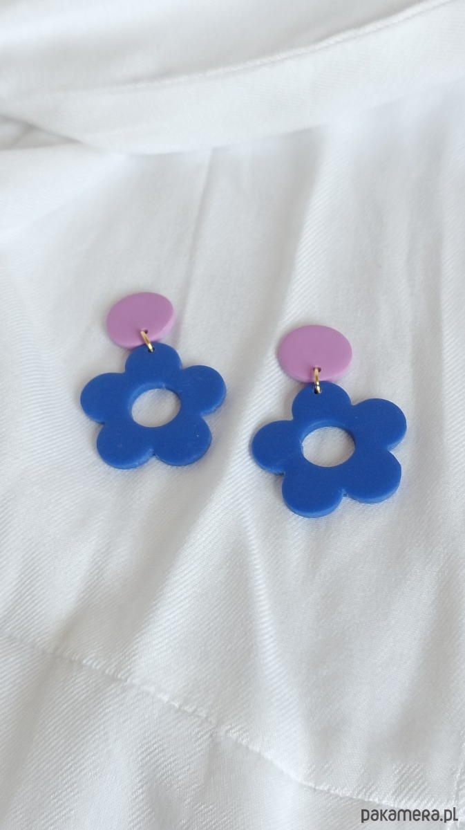 Kolczyki duże kwiaty wykonane z glinki polimerowej oraz stali chirurgicznej. Kolczyki są montowane na sztyft.