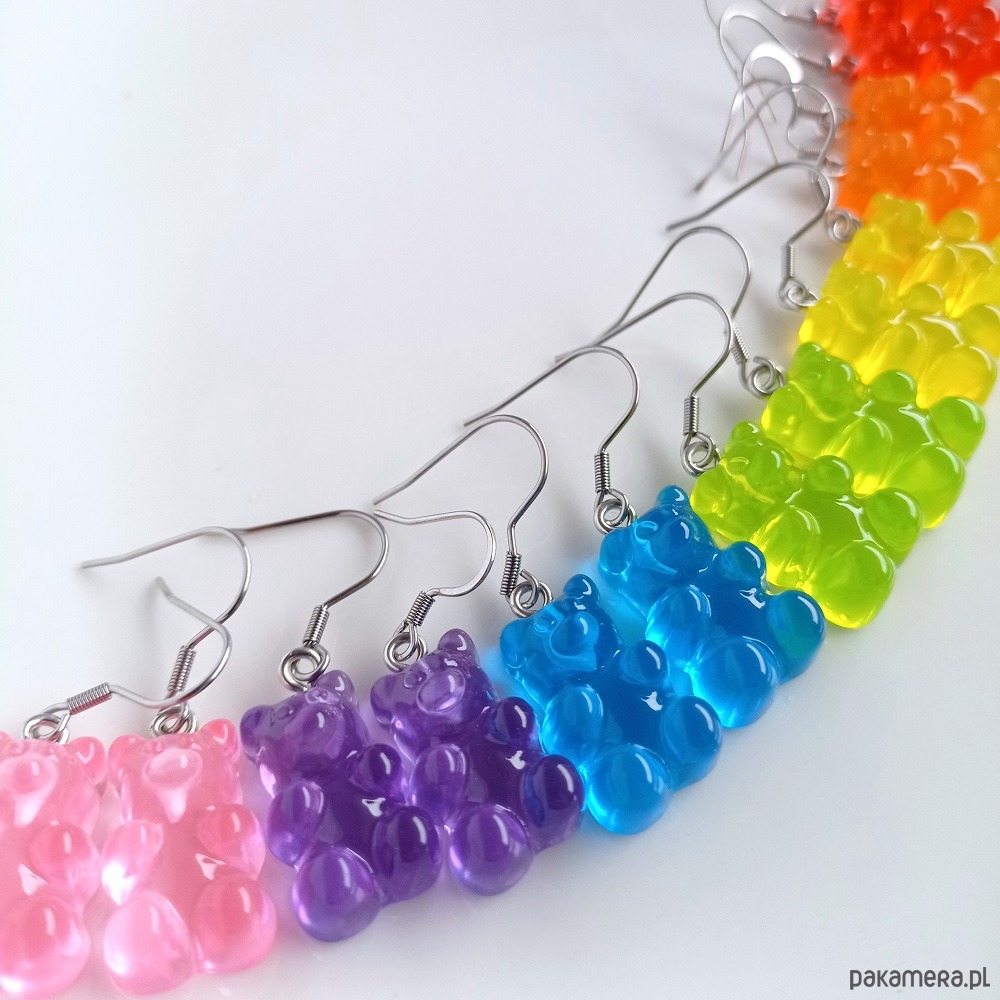 Kolczyki misie haribo. Do wyboru bigle na stali chirurgicznej lub srebrze próby 925.