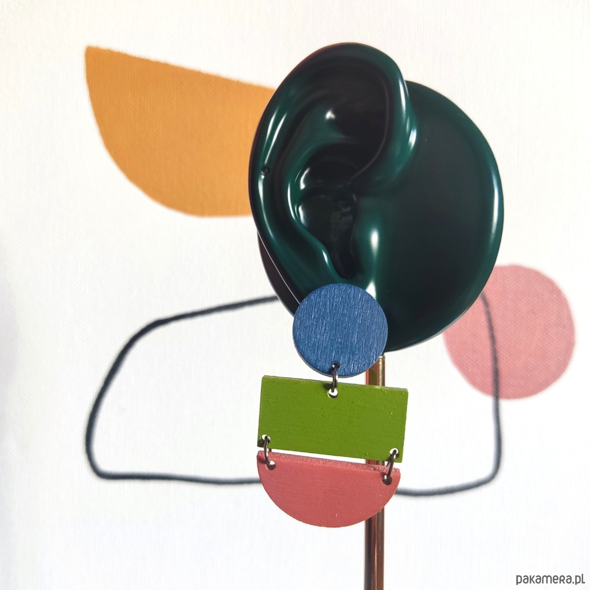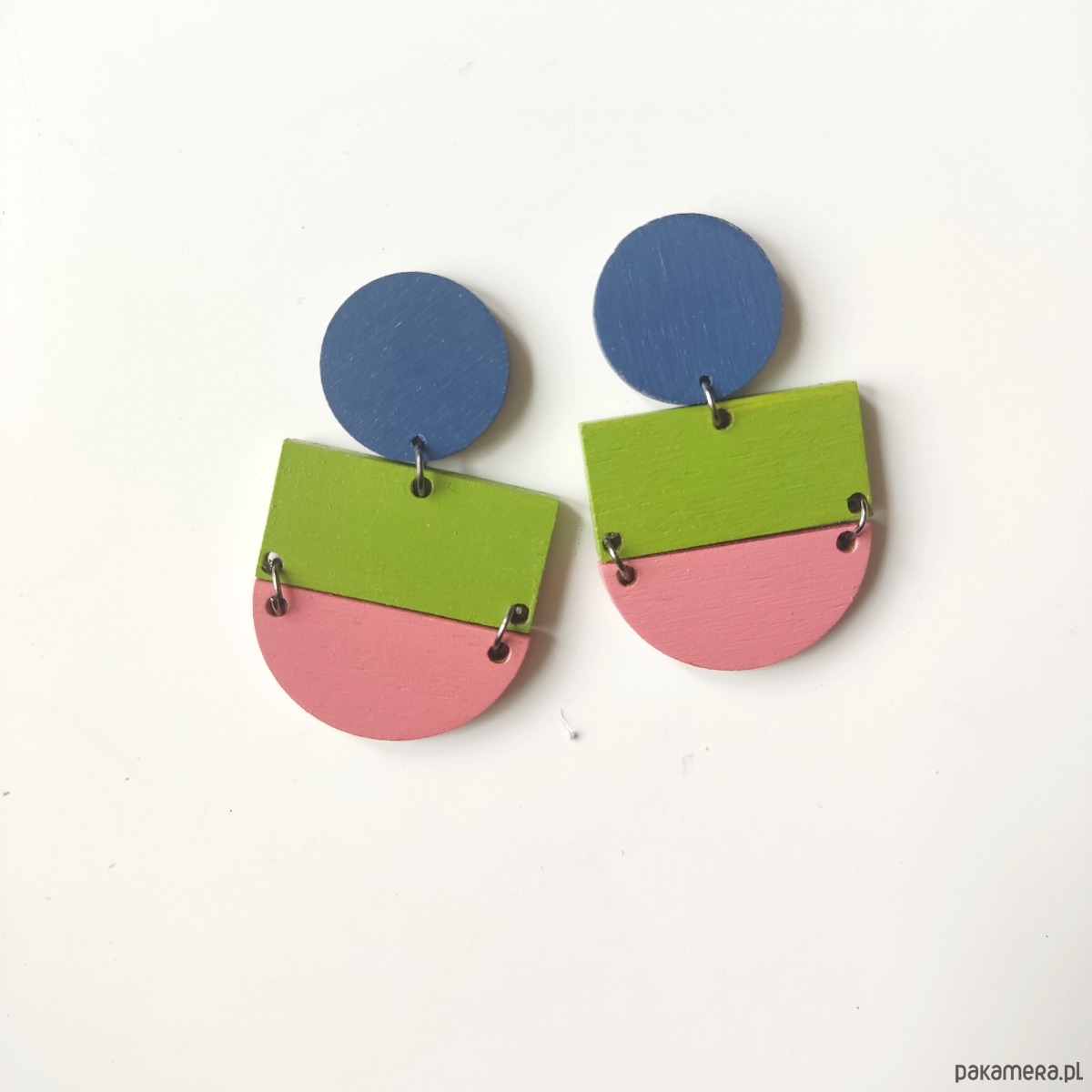 Duże drewniane kolczyki, wykonane ze sklejki i malowane ręcznie. Lekkie; nie obciążają ucha.