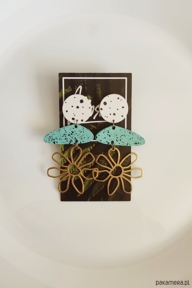 Kolczyki wiszące mięta z kwiatem