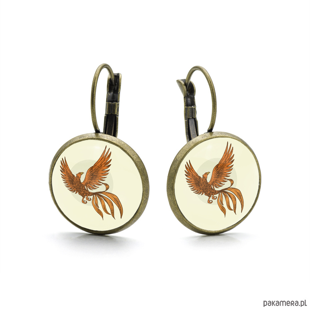 Kolczyki wiszące na biglu Feniks motyw magiczny fantasy na prezent dla niej