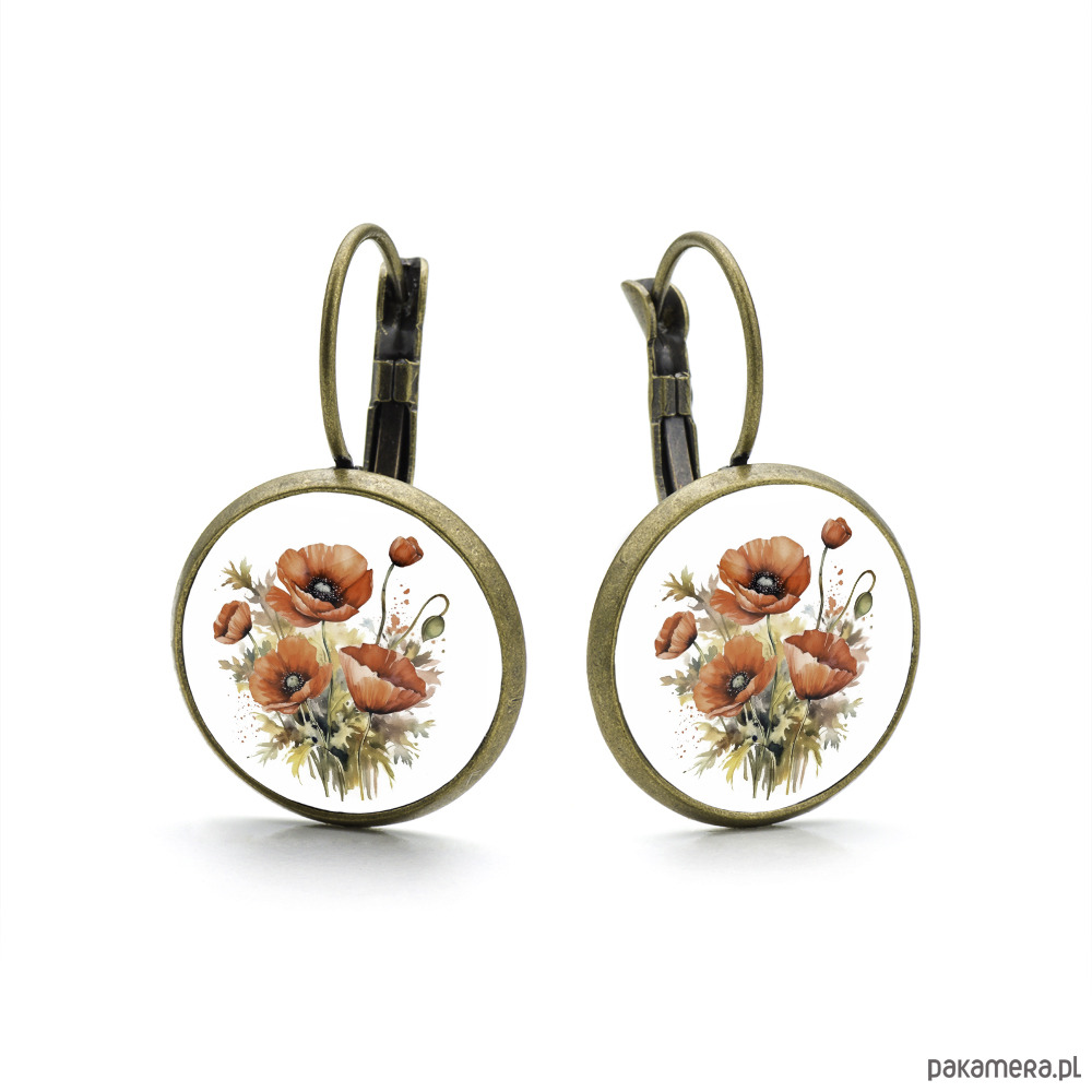 Kolczyki na biglu angielskim Bukiet Maków prezent dla niej z kwiatami