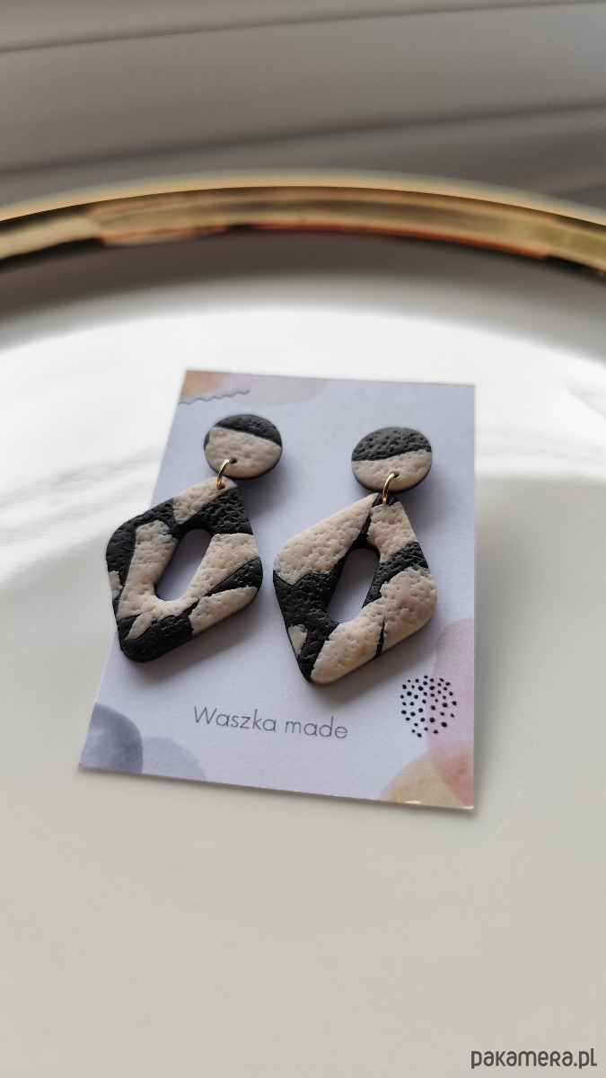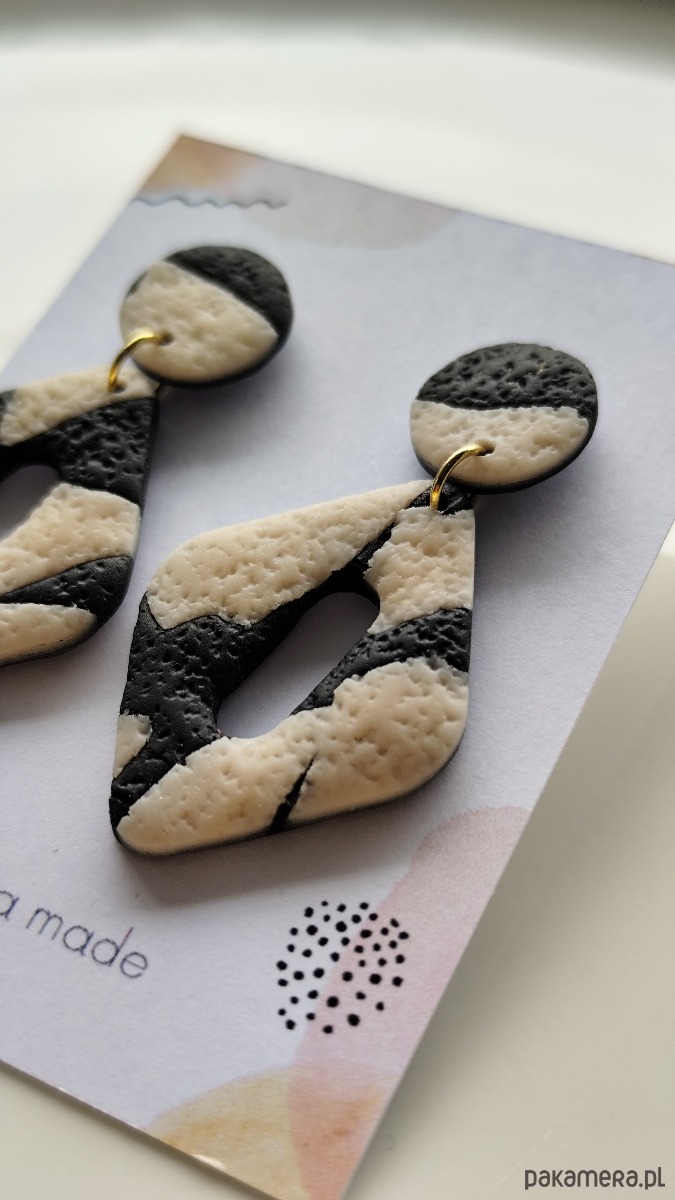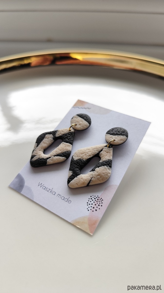 Przepiękne kolczyki w kolorze czarnym. Geometryczny wzór. Elementy metalowe to stal chirurgiczna.