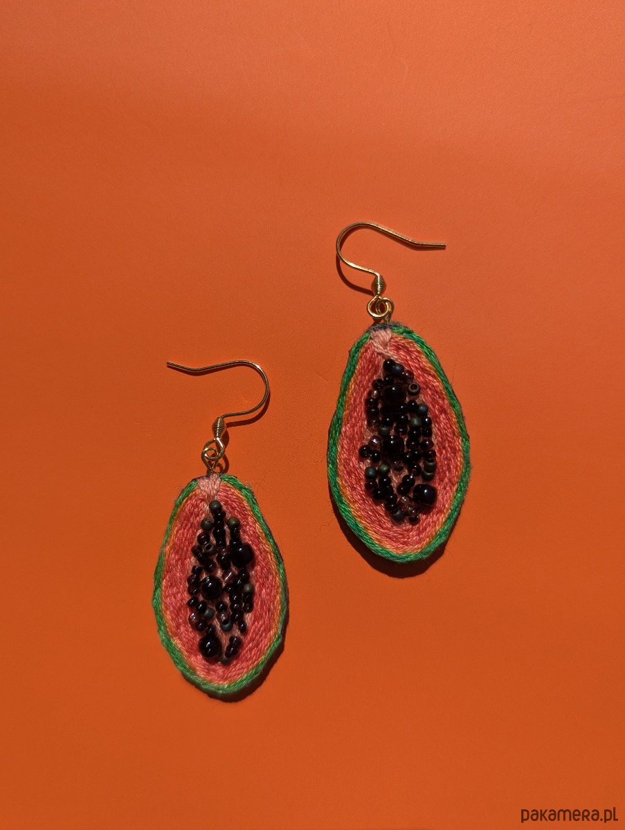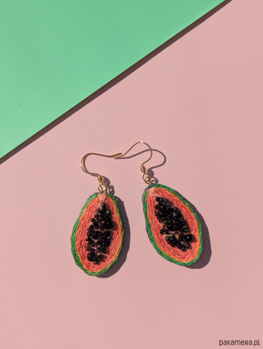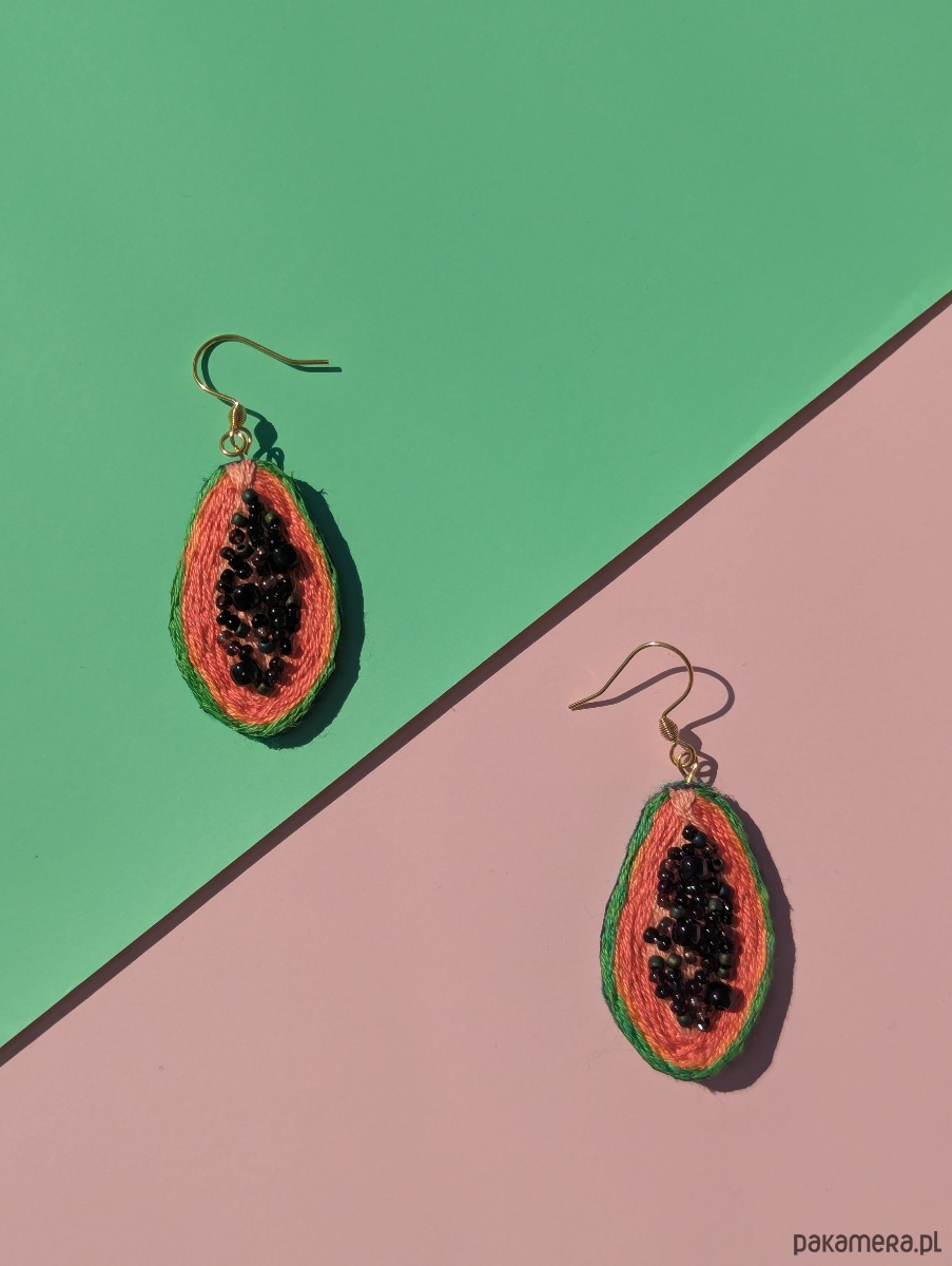 Każda para kolczyków została zaprojektowana i wykonana przeze mnie ręcznie – jest jedyna w swoim rodzaju i niepowtarzalna. Zapewniam Cię, że nie ma drugiej takiej samej pary kolczyków, nawet papaje w jednej parze różnią się między sobą doborem i lokalizacją koralików. ;)