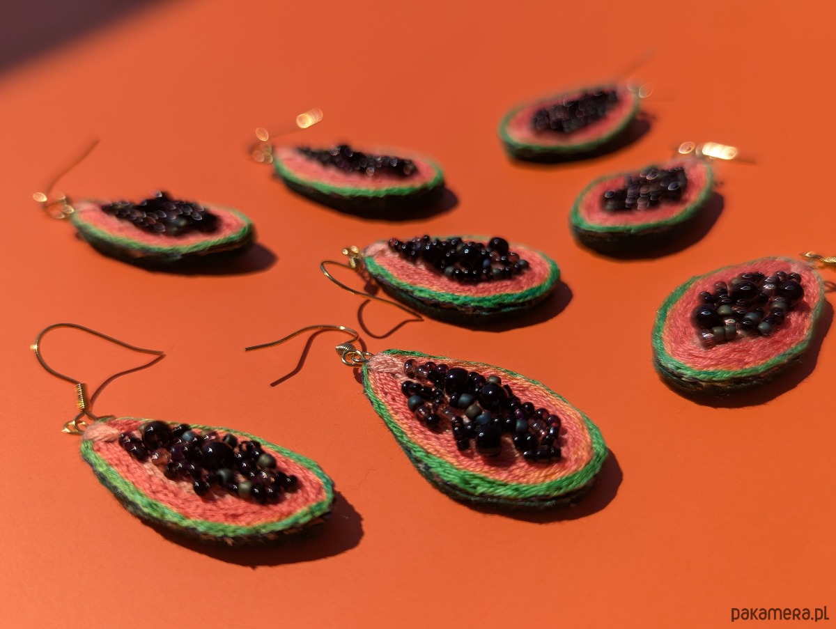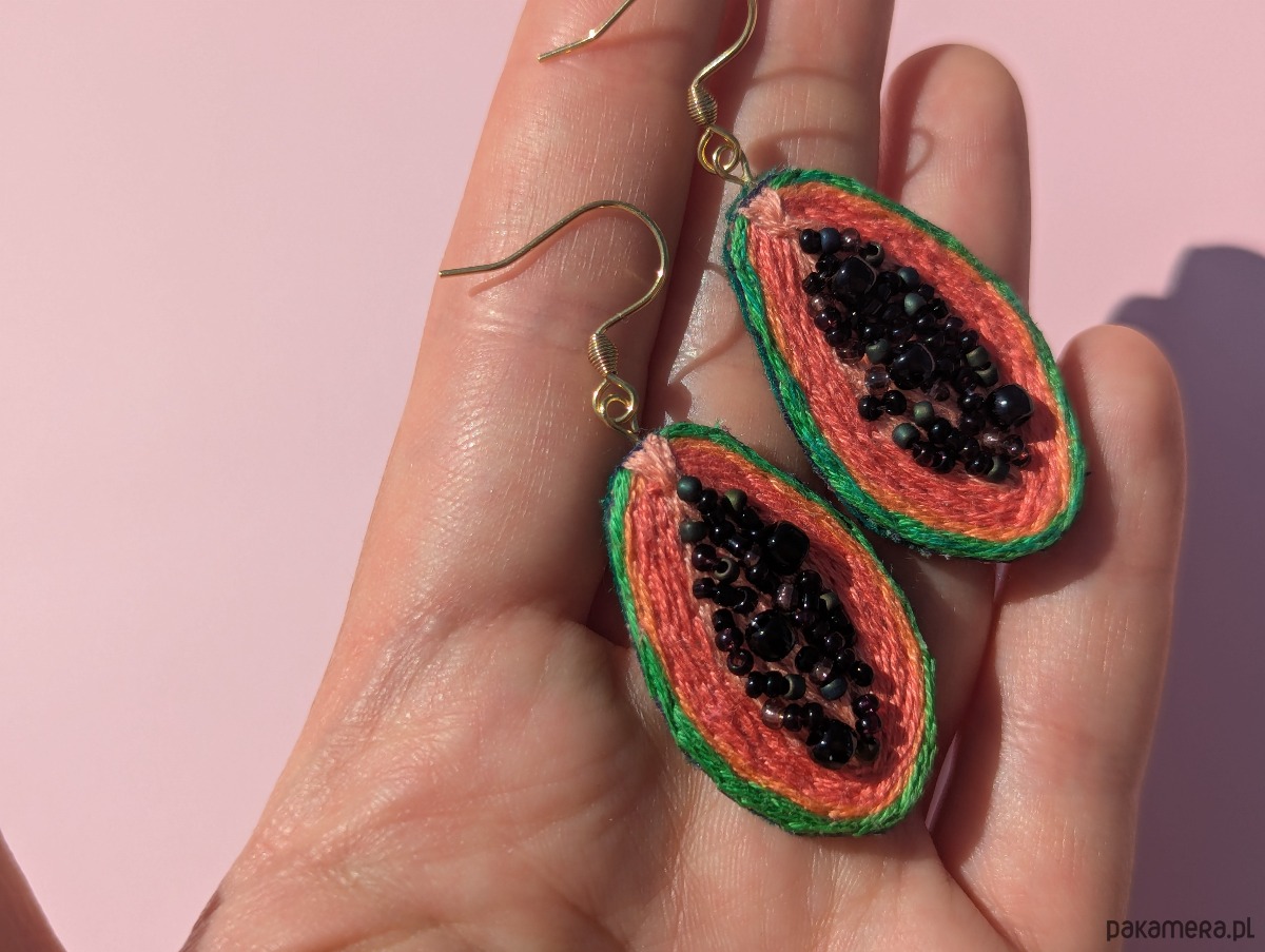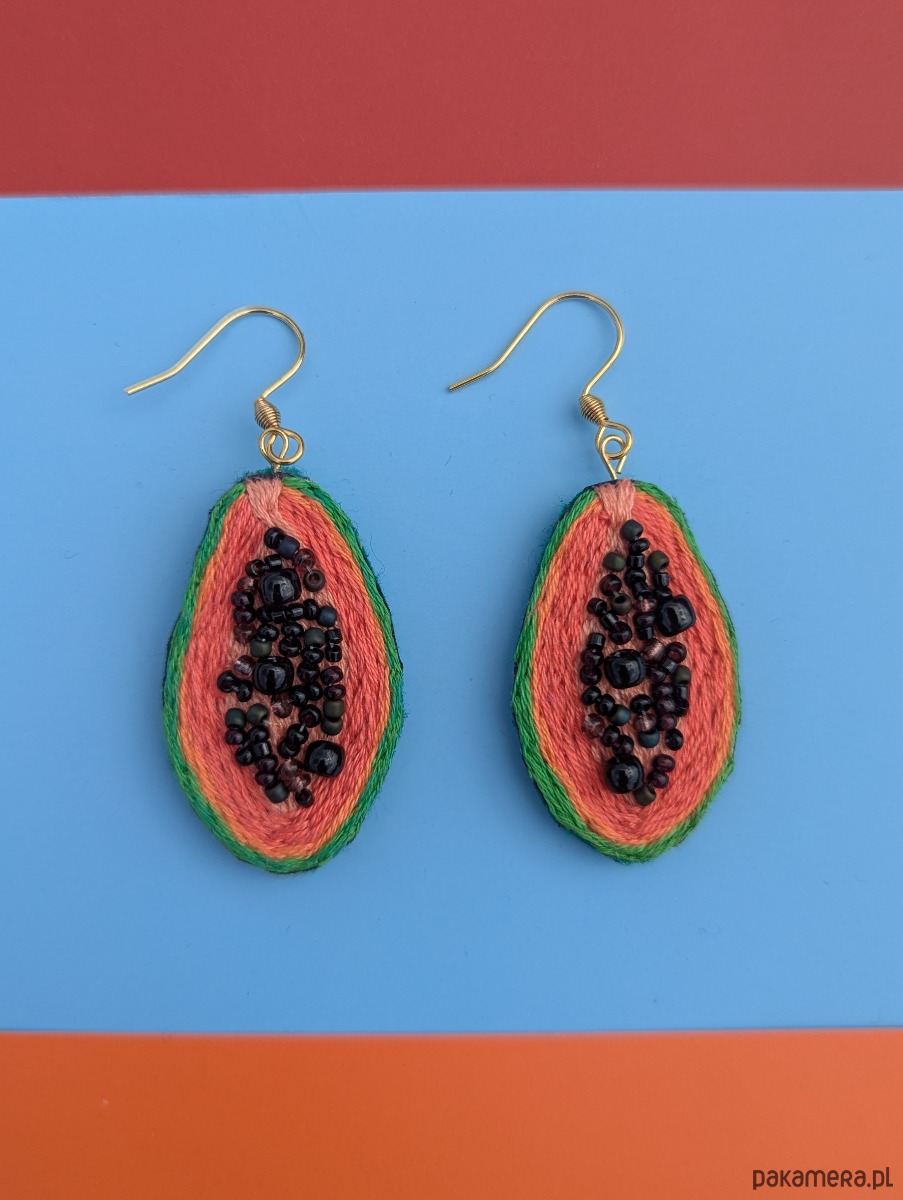 Każda para kolczyków została zaprojektowana i wykonana przeze mnie ręcznie – jest jedyna w swoim rodzaju i niepowtarzalna. Zapewniam Cię, że nie ma drugiej takiej samej pary kolczyków, nawet papaje w jednej parze różnią się między sobą doborem i lokalizacją koralików. ;)