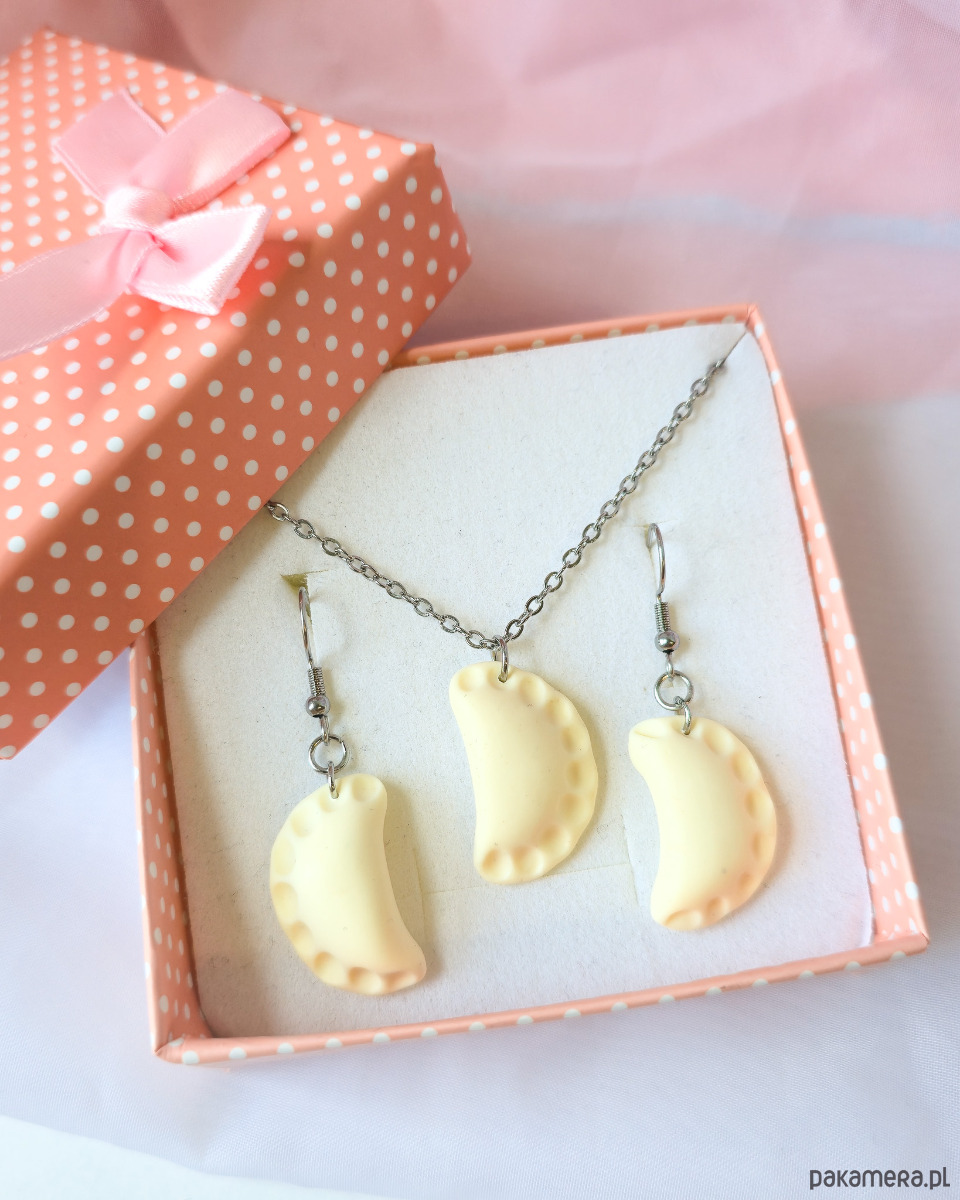 Te kolczyki zostały ulepione ręcznie z wysokiej jakości glinki polimerowej i wykończone biglami ze stali szlachetnej lub srebra ( do wyboru). To ciekawy pomysł na upominek z okazji urodzin dla nastolatki lub wielbicielki pierogów i polskiej kuchni.