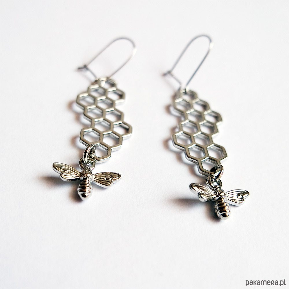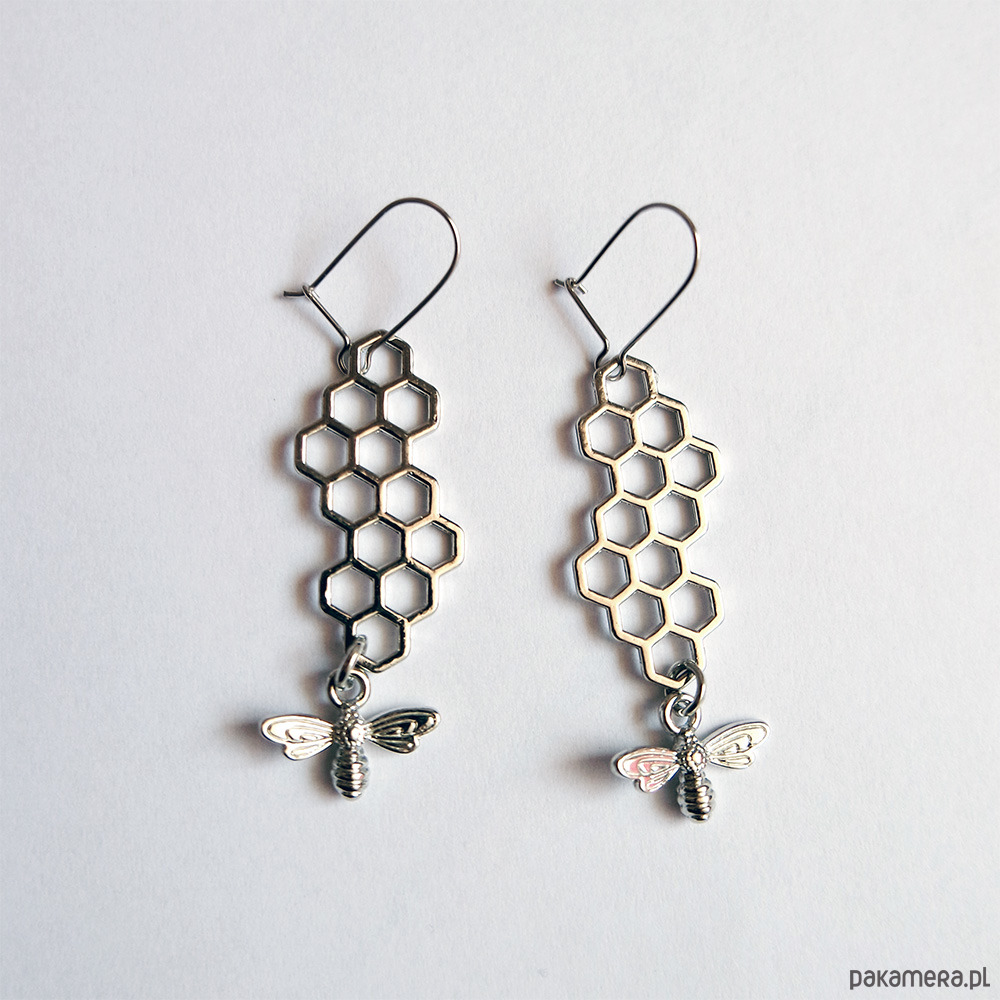 Kolczyki wiszące - Plaster miodu, pszczoła
