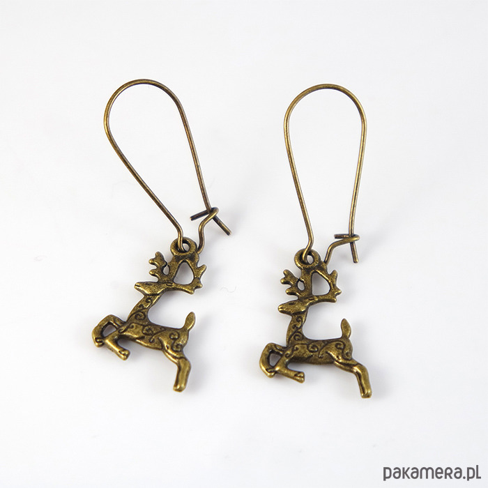 Kolczyki wykonane z zawieszki w kształcie reniferów. Bigle zamykane.