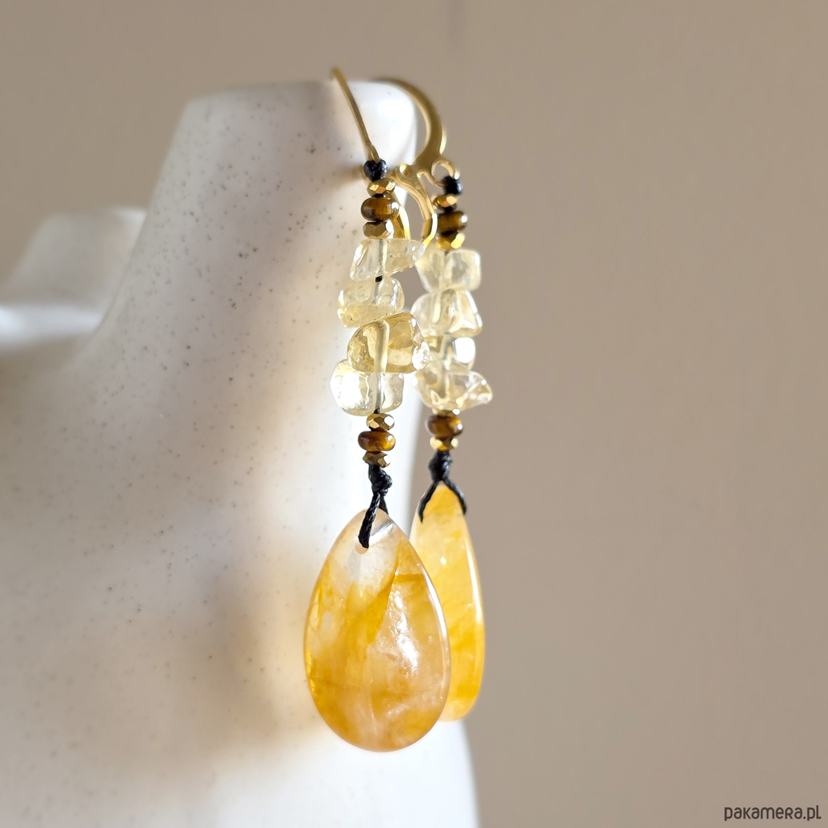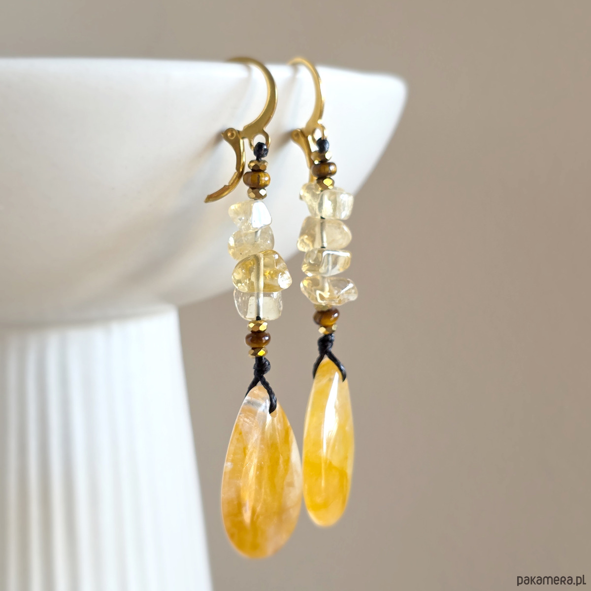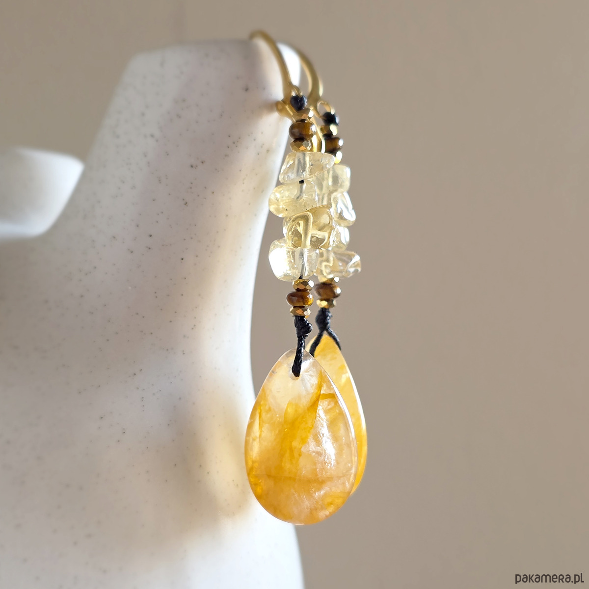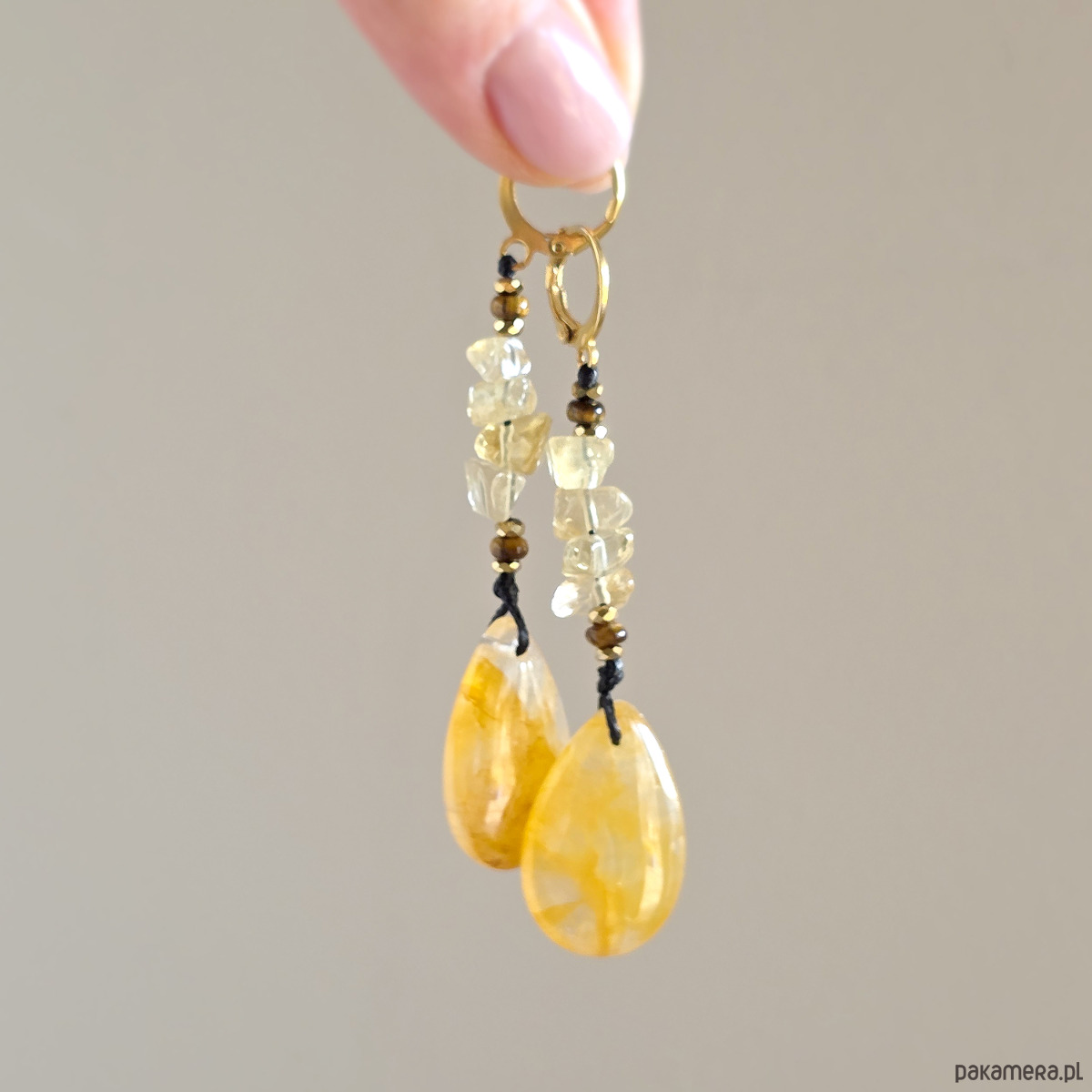 Kolczyki wiszące UNIKAT golden healer, cytryn, tygrysie oko