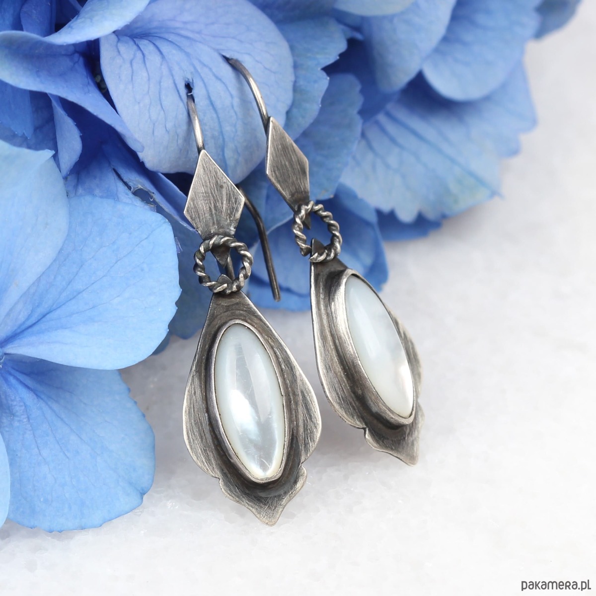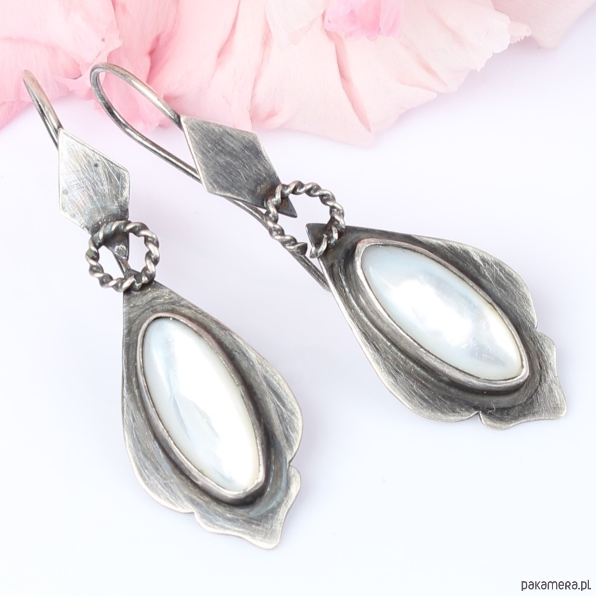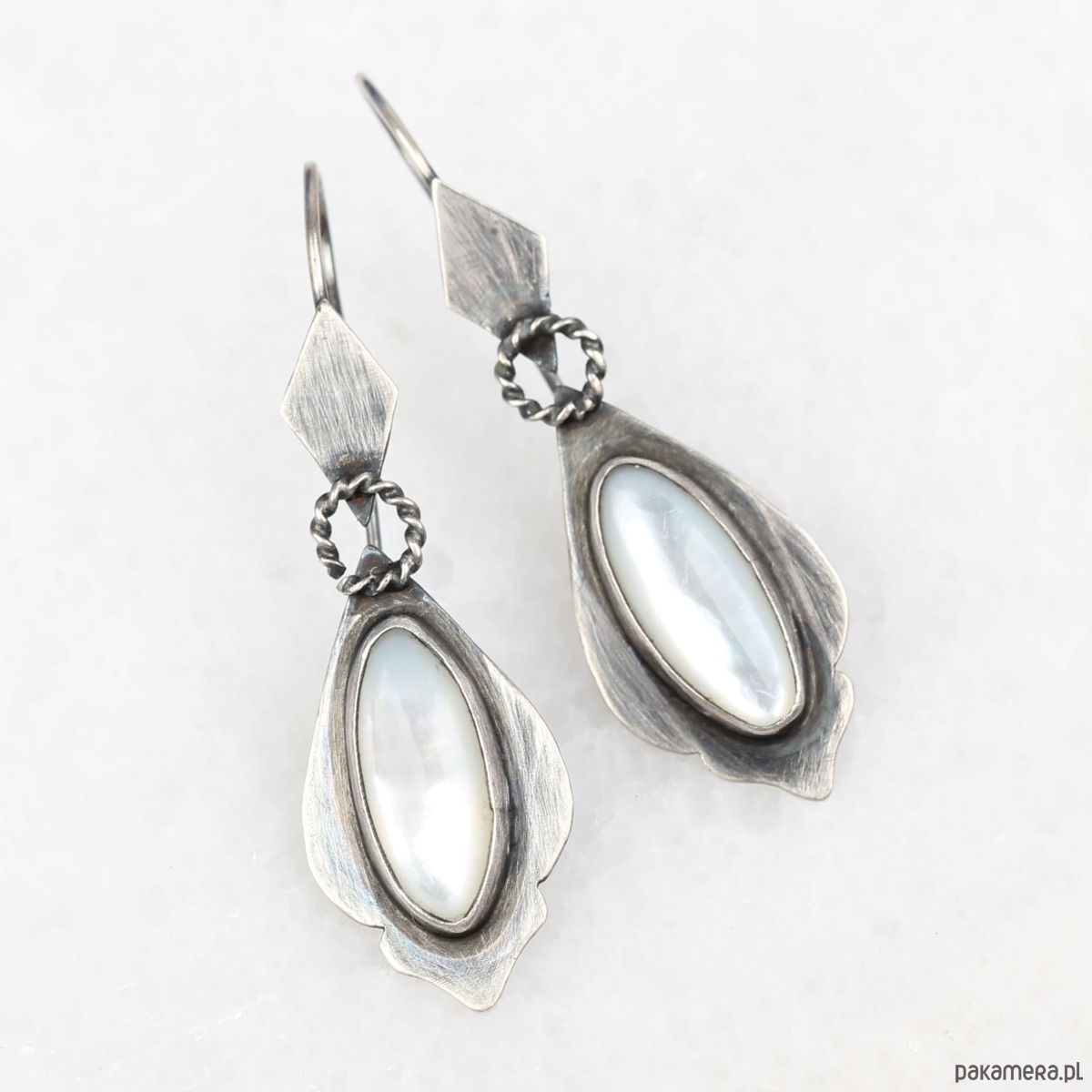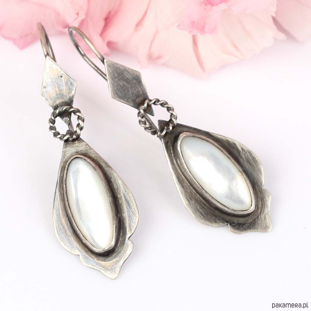 Ręcznie wykonane kolczyki w stylu Vintage ze srebra pokrytego oksydą z masą perłową