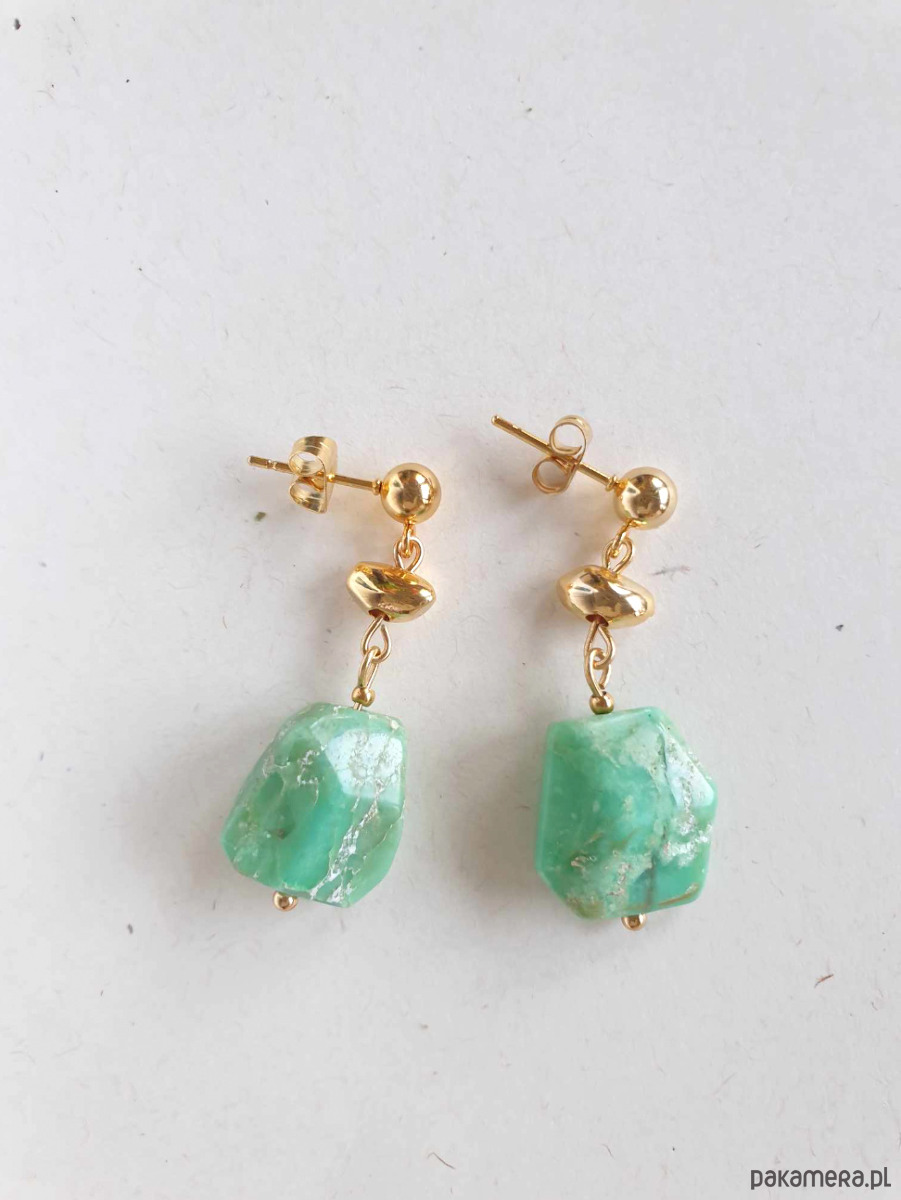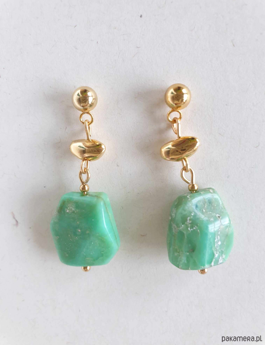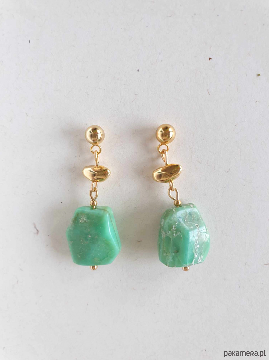 Kolczyki wiszące z chryzoprazem i mosiądzem złoconym