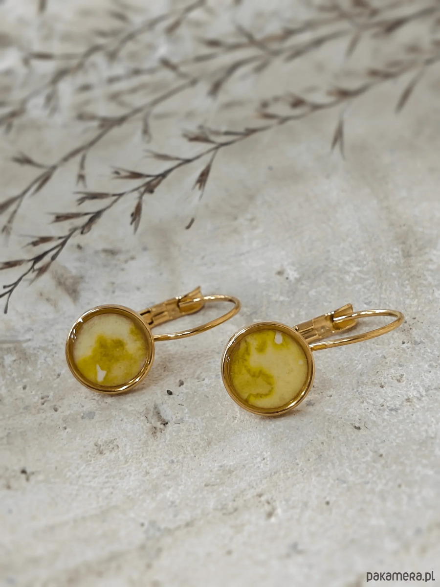 Kolczyki są pokryte żywicą, która zapewnia im trwałość i odporność na zarysowania czy przebarwienia. Wykonane z dbałością o każdy szczegół, prezentują się bardzo stylowo.