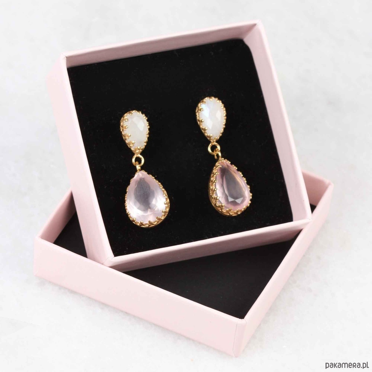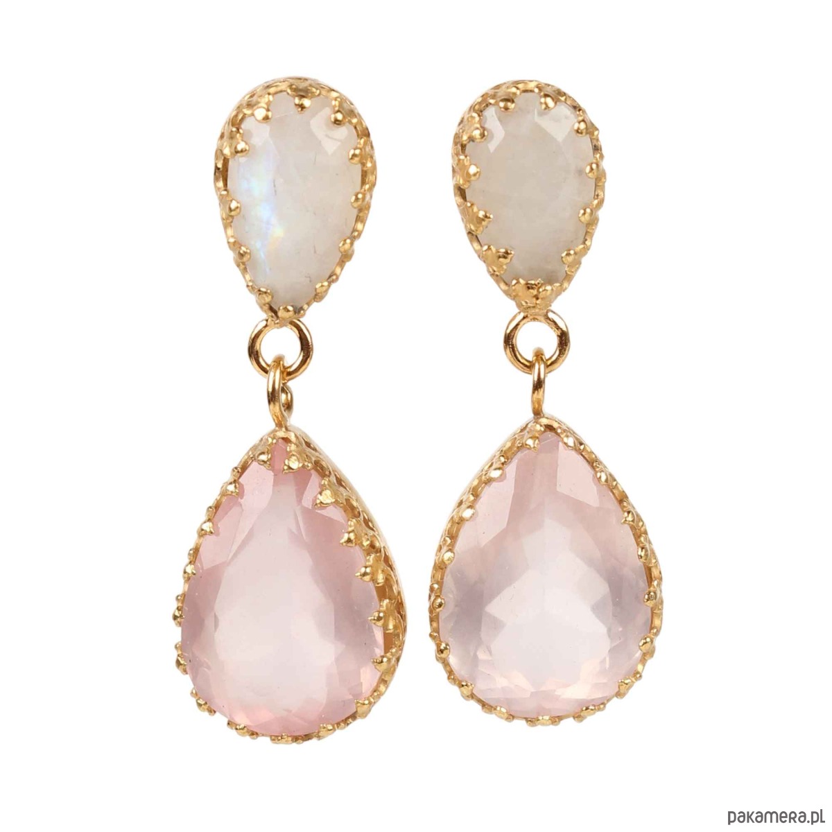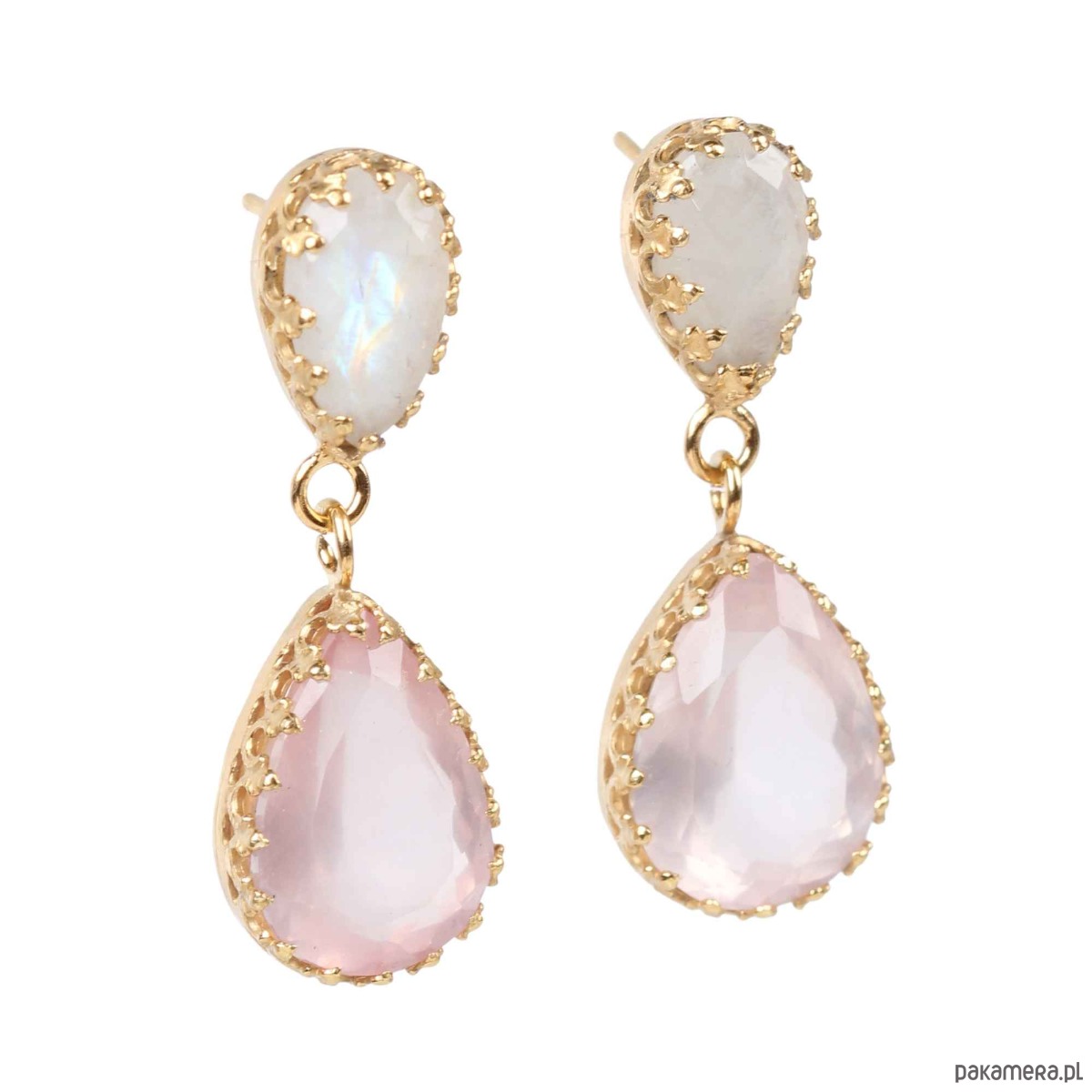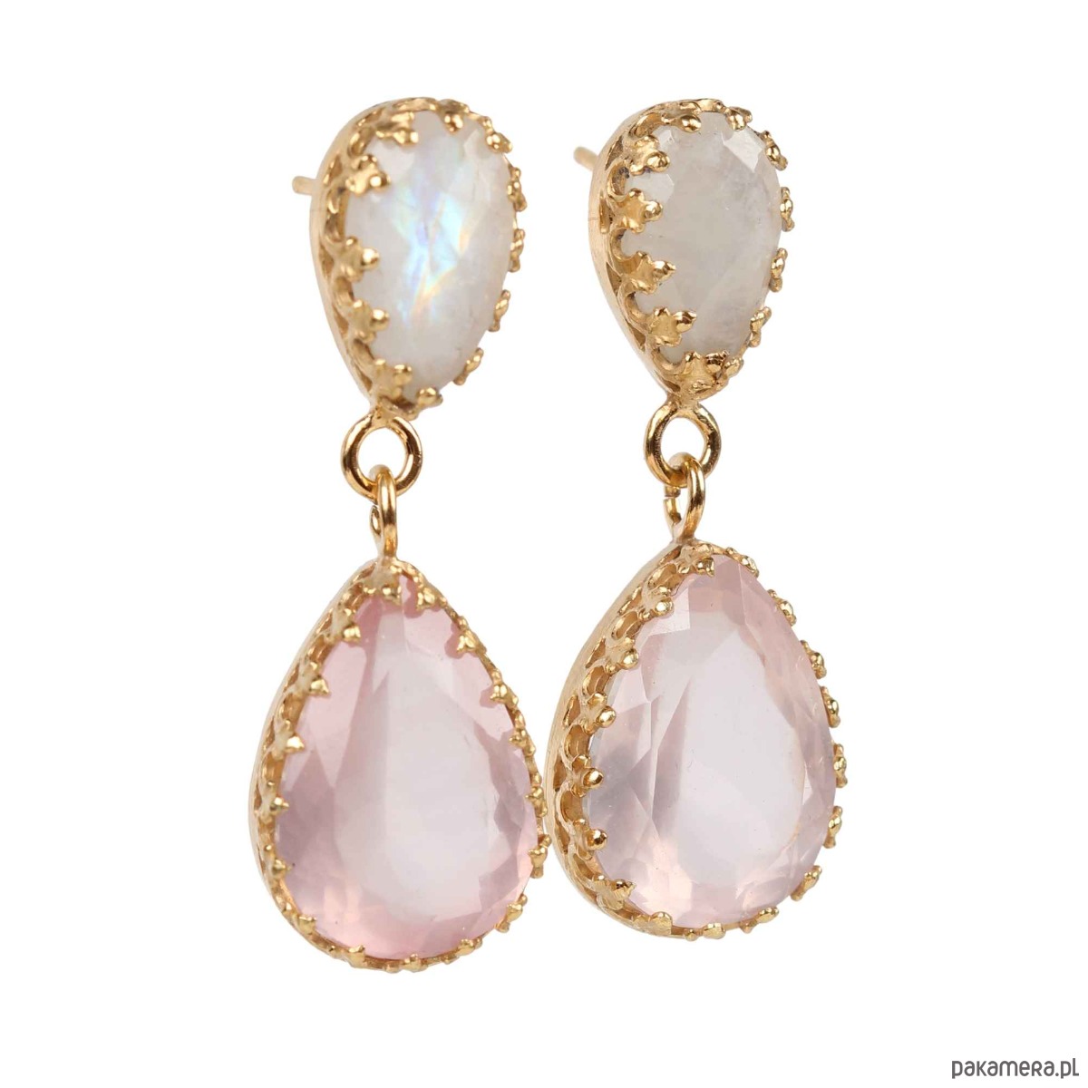 Kolczyki wiszące z kwarcem różowym i kamieniem księżycowym