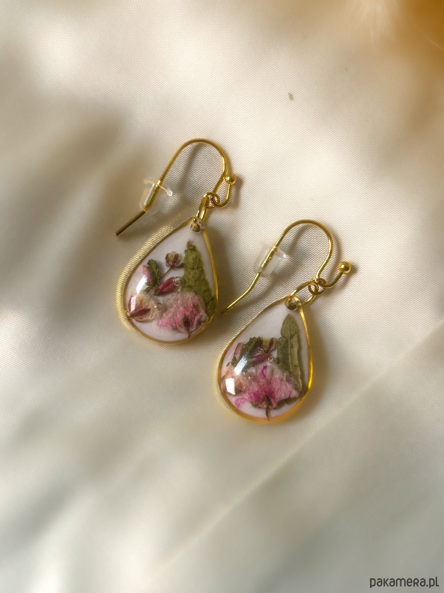 Wiszące kolczyki z kwiatami. Lato uchwycone na lata.