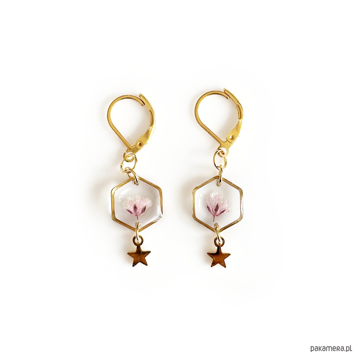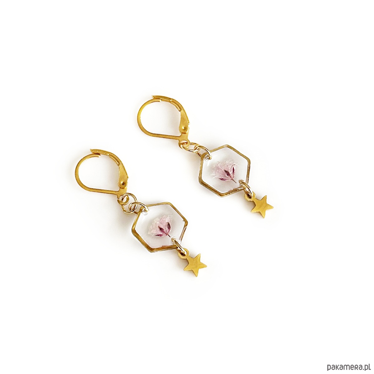Kolczyki wiszące z żywicy.