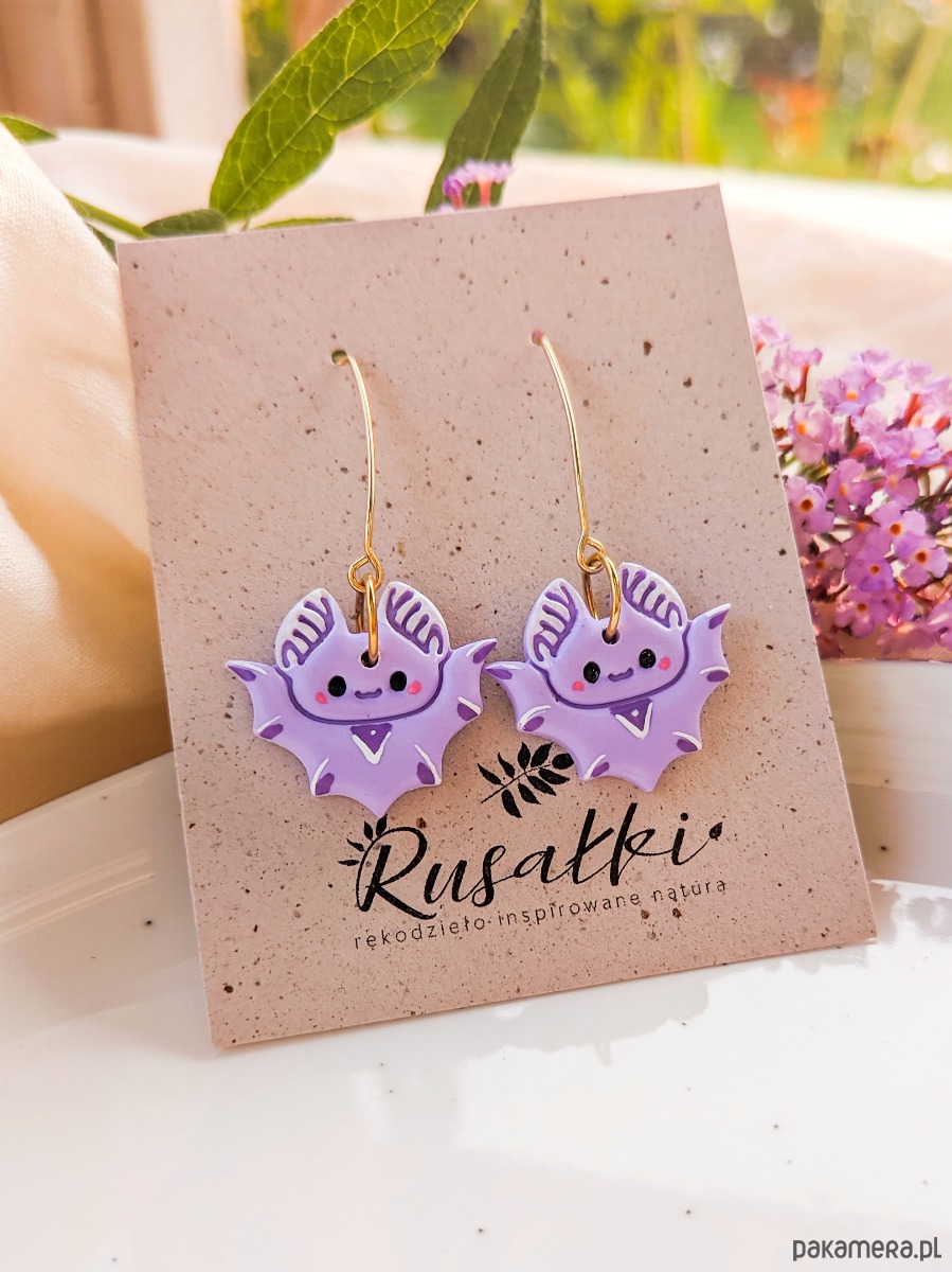 Kolczyki wiszące z nietoperzem, urocza biżuteria, prezent dla zwierzoluba