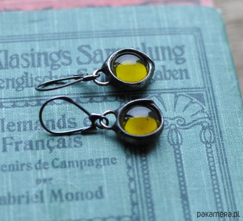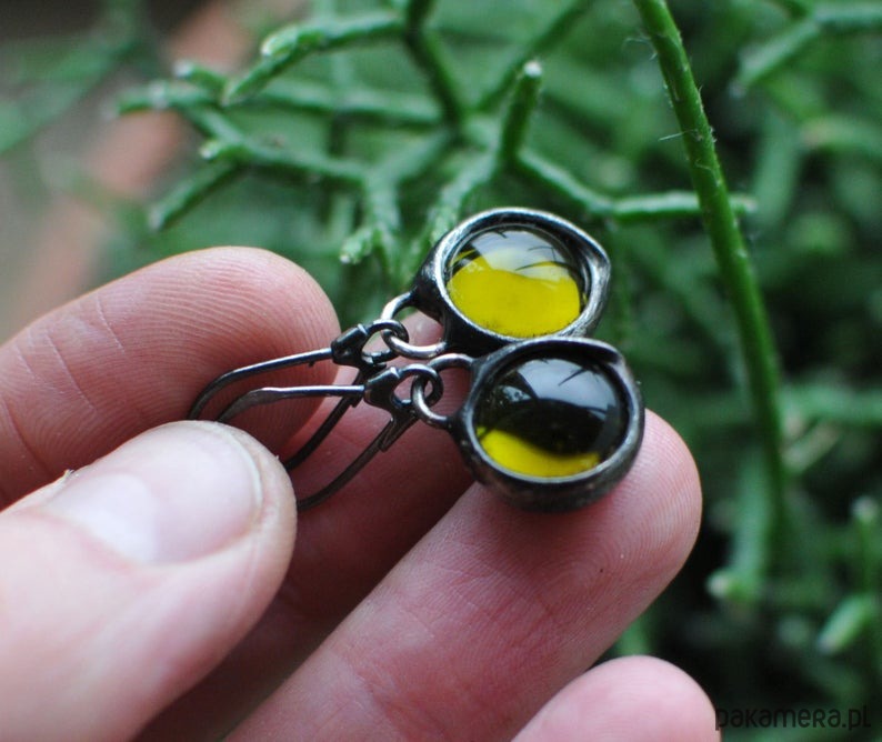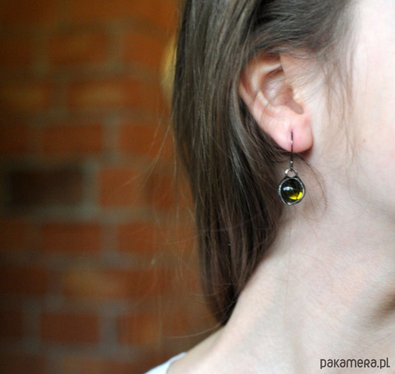 Piękne kolczyki wykonane ze szkła witrażowego w wielu zielonkawym odcieniu ?