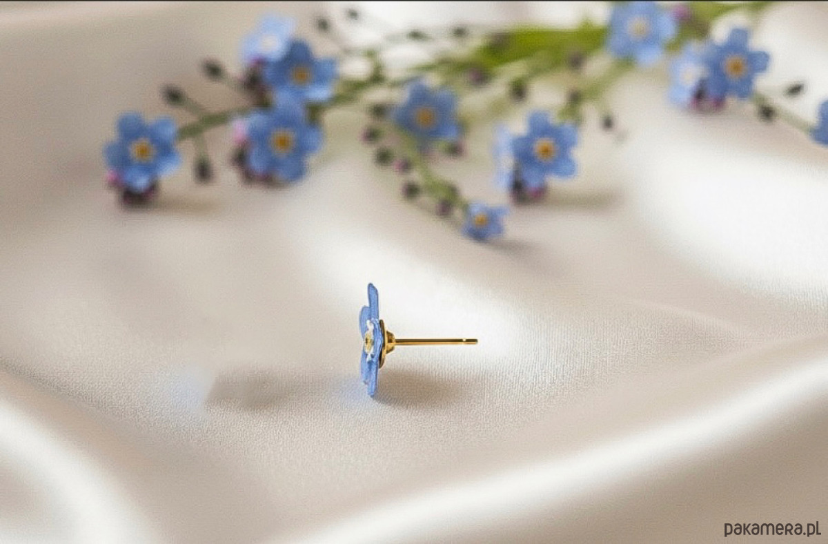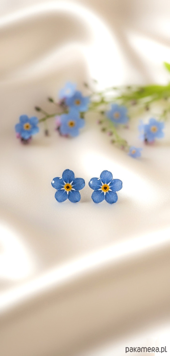Kolczyki wkrętki z prawdziwymi niezapominajkami