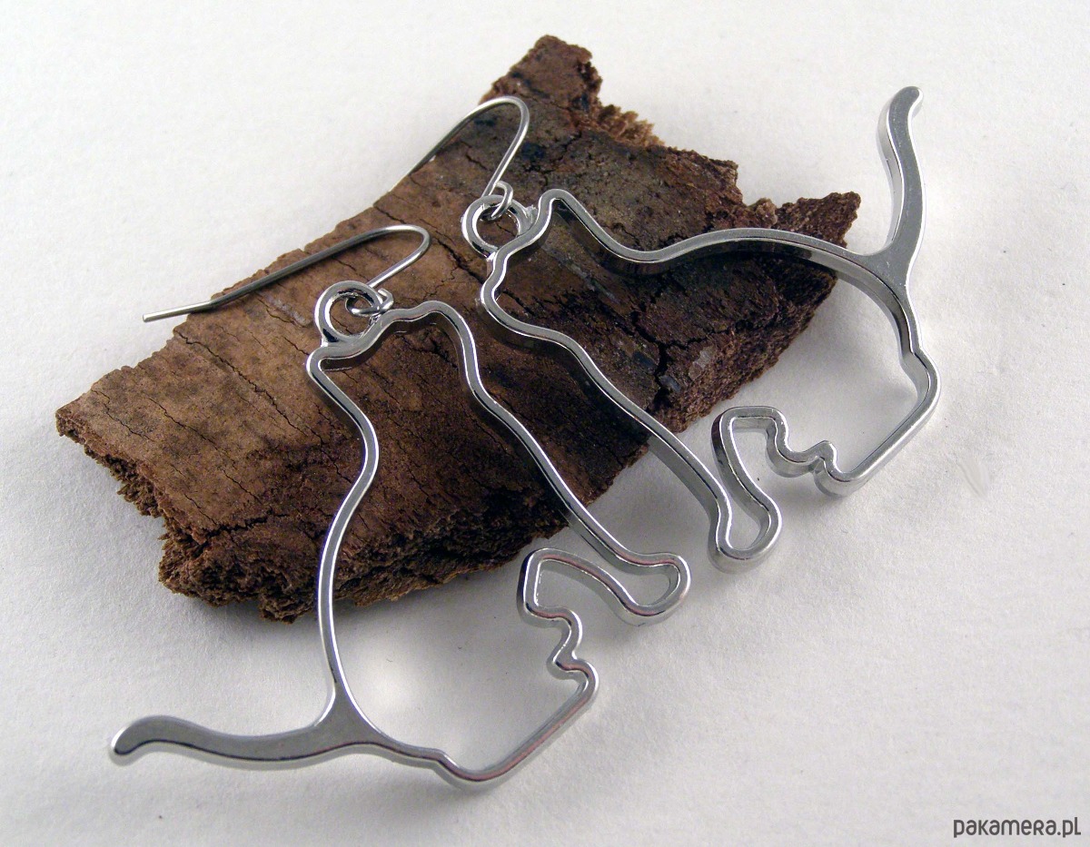 Kolczyki z metalu w kształcie kotów. Wymiary 4,5 x 3,8 cm. 10% kwoty sprzedaży kolczyków z motywem kotów, co miesiąc przekazywane jest na konto Fundacji Hospicjum Dla Kotów Bezdomnych w Toruniu. Liczy się każda złotówka.