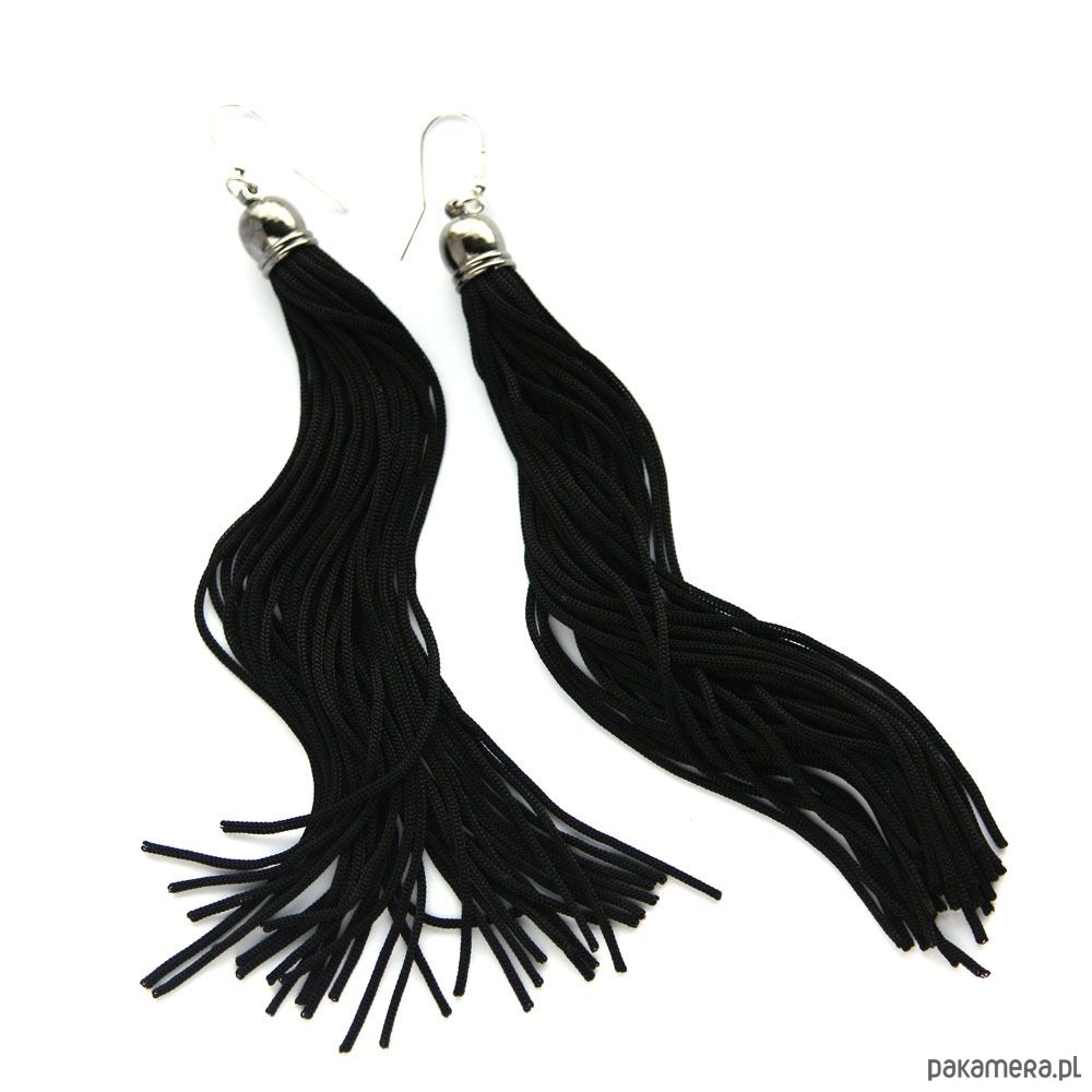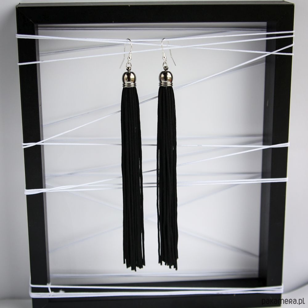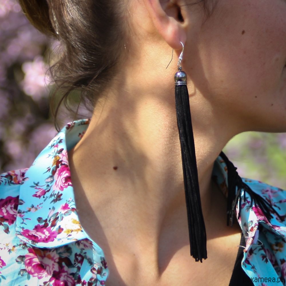 Efektowne kolczyki z długimi frędzlami w kolorze czarnym - idealne do karnawałowej lub letniej stylizacji!
