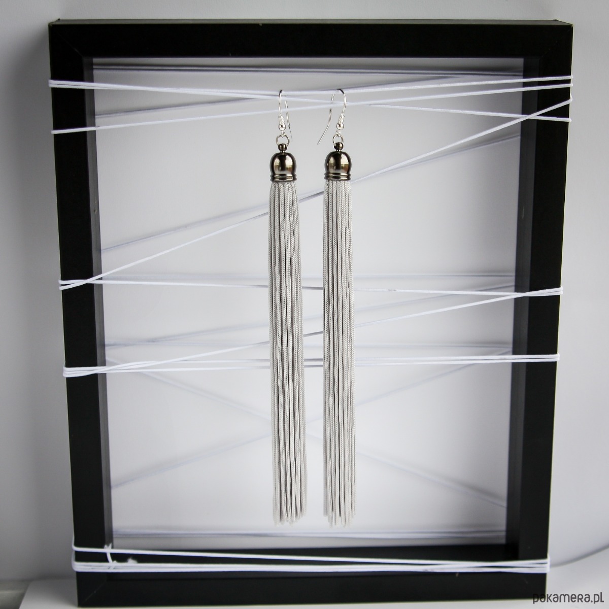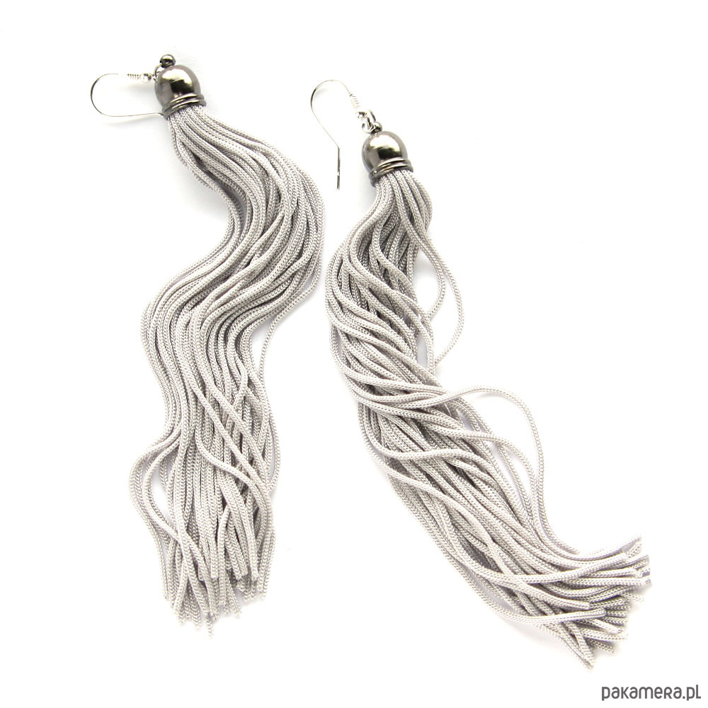 Efektowne kolczyki z długimi frędzlami w srebrzystym odcieniu szarości - idealne do karnawałowej lub letniej stylizacji!