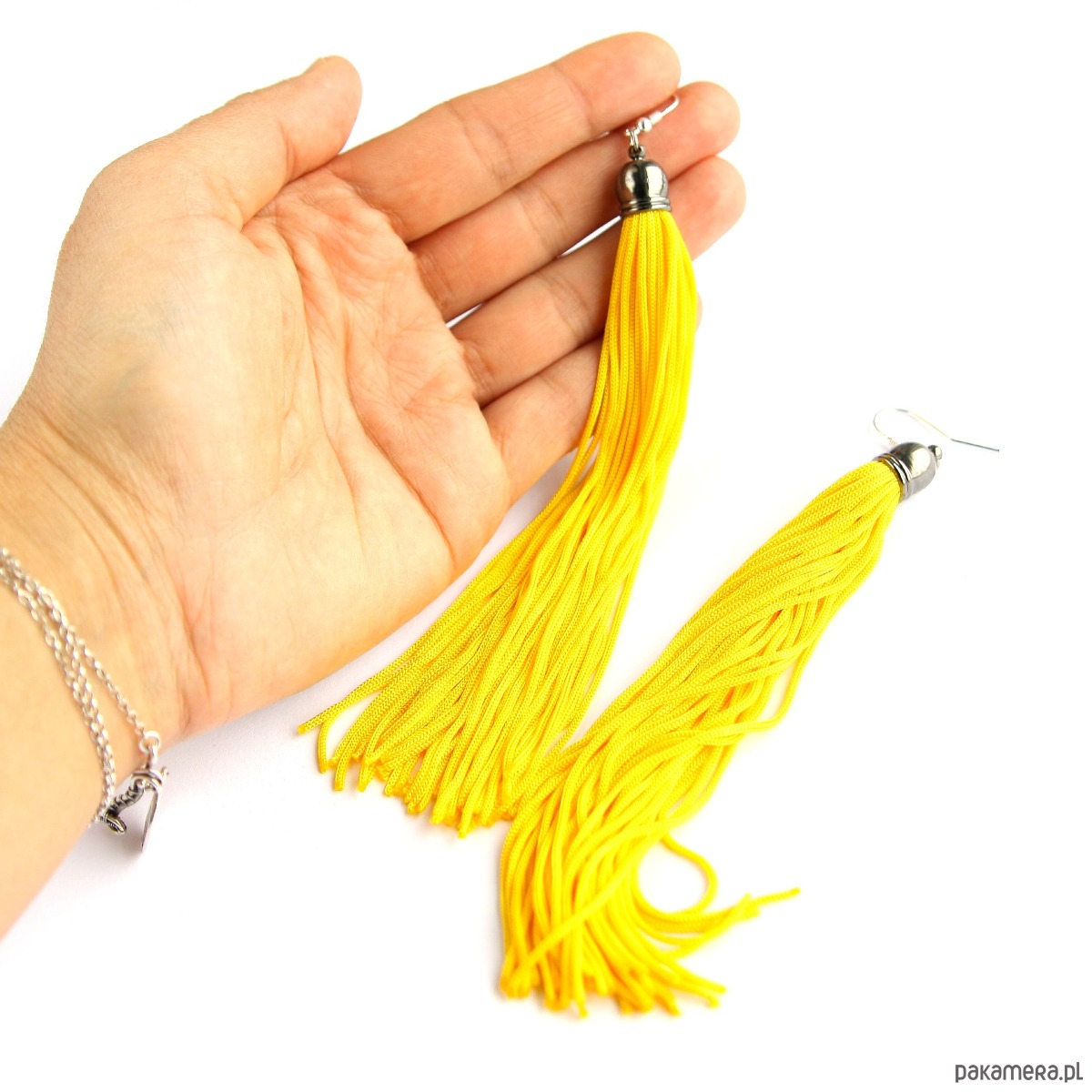 Efektowne kolczyki z długimi frędzlami w słonecznym odcieniu żółtego - idealne do karnawałowej lub letniej stylizacji!