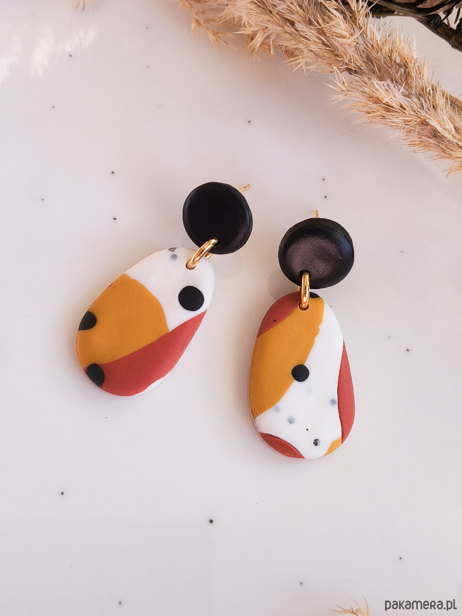 Kolczyki z abstrakcyjnym wzorem, elegancka biżuteria w ciepłych kolorach