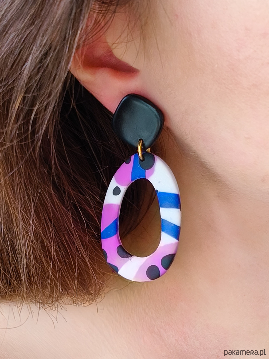 Artystyczne kolczyki z abstrakcyjnym wzorem to biżuteria inspirowana malarstwem i nowoczesnym designem. Połączenie fioletu i kobaltu z kontrastowymi białymi oraz czarnymi ciapkami nadaje im wyrazisty, a jednocześnie elegancki charakter. To wyjątkowy dodatek dla osób, które lubią kolorową biżuterię z artystyczną duszą i chcą podkreślić swój indywidualny styl. Kolczyki wykonane są z leciutkiej gliny polimerowej, a metalowe elementy są wykonane ze stali chirurgicznej. Stal chirurgiczna jest tworzywem, które mogą nosić nawet alergicy i który nie zmienia koloru pod wpływem wody.