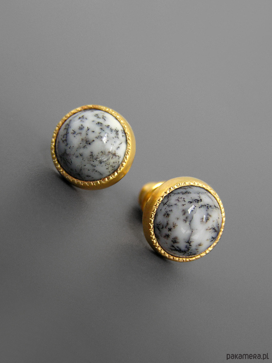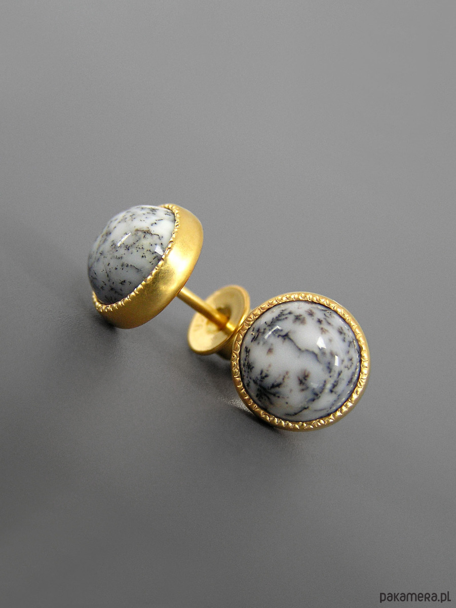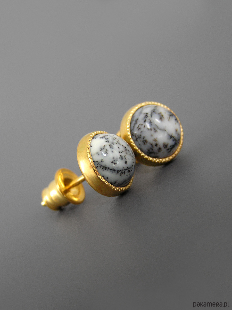 Kolczyki z agatem dendrytowym, srebro pozłacane