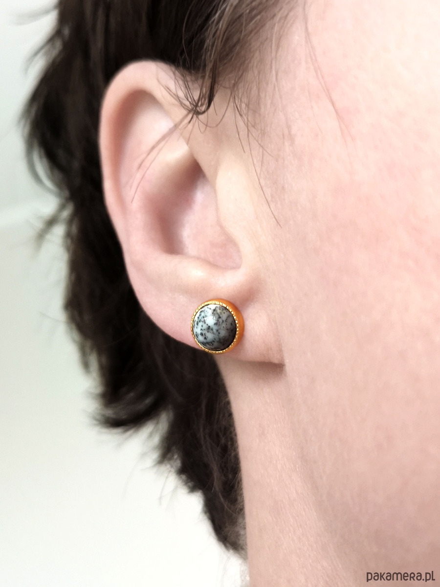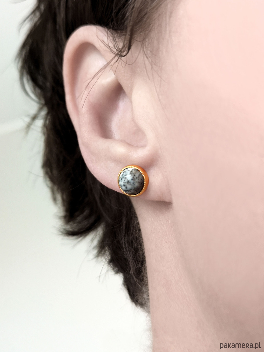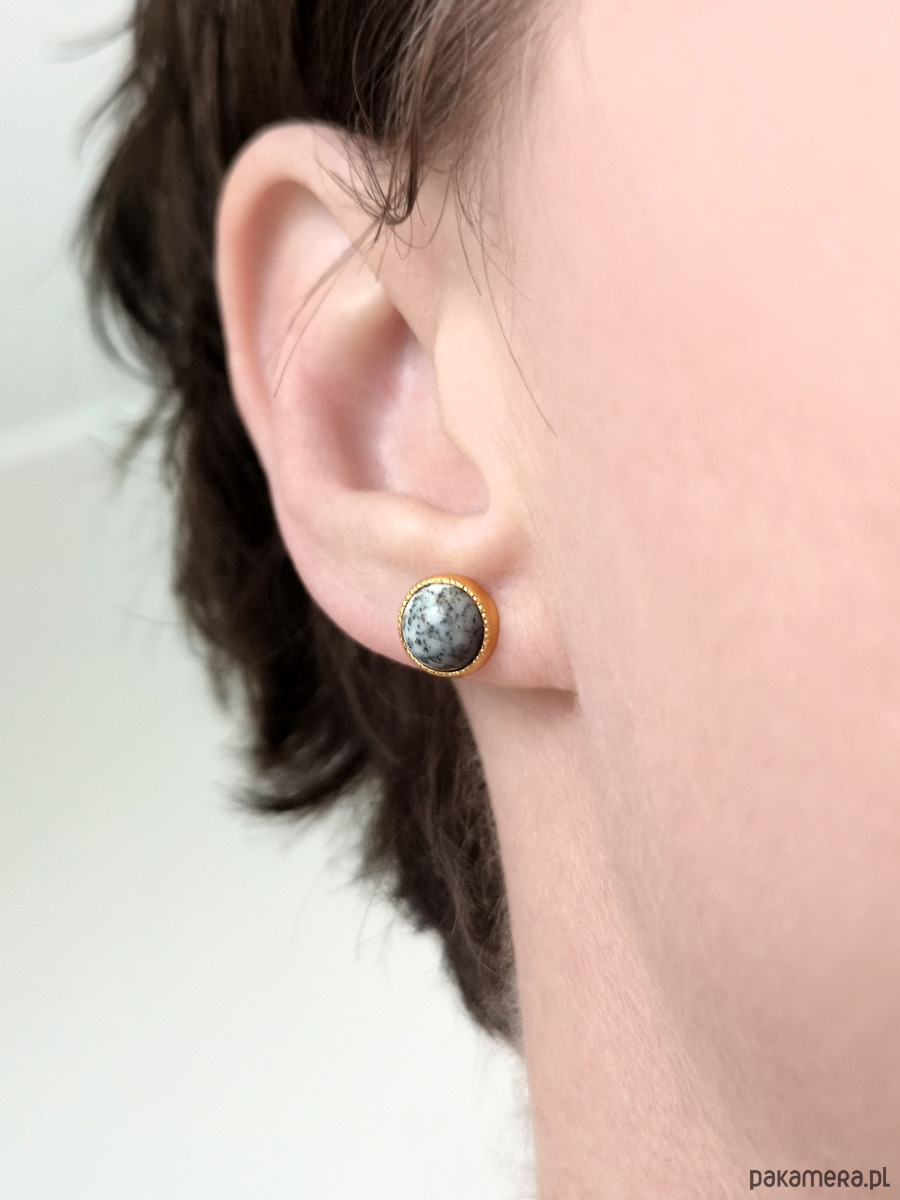 Kolczyki z agatem dendrytowym, srebro pozłacane