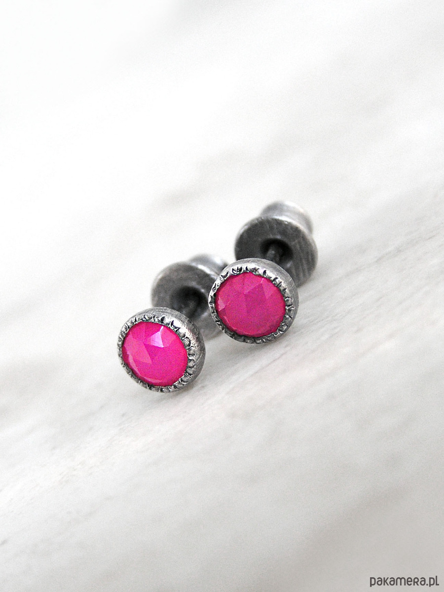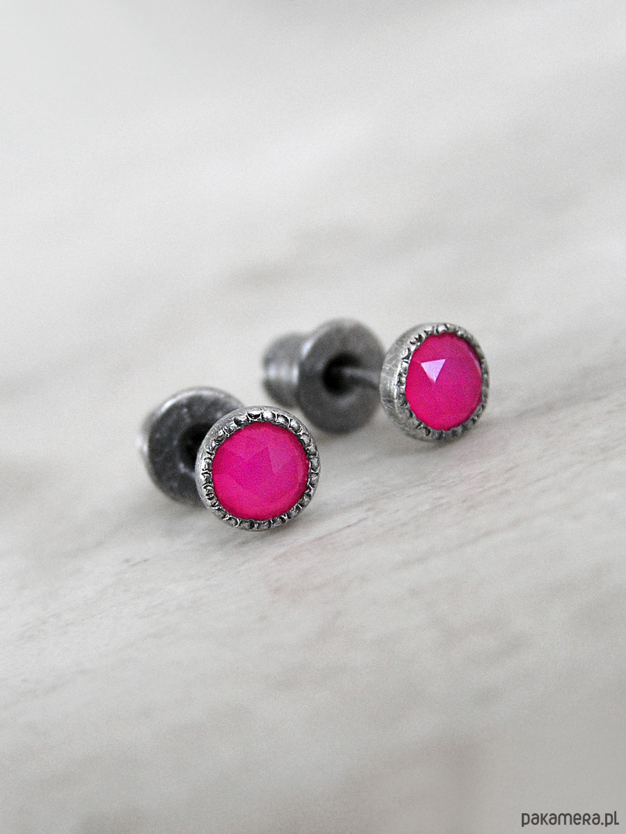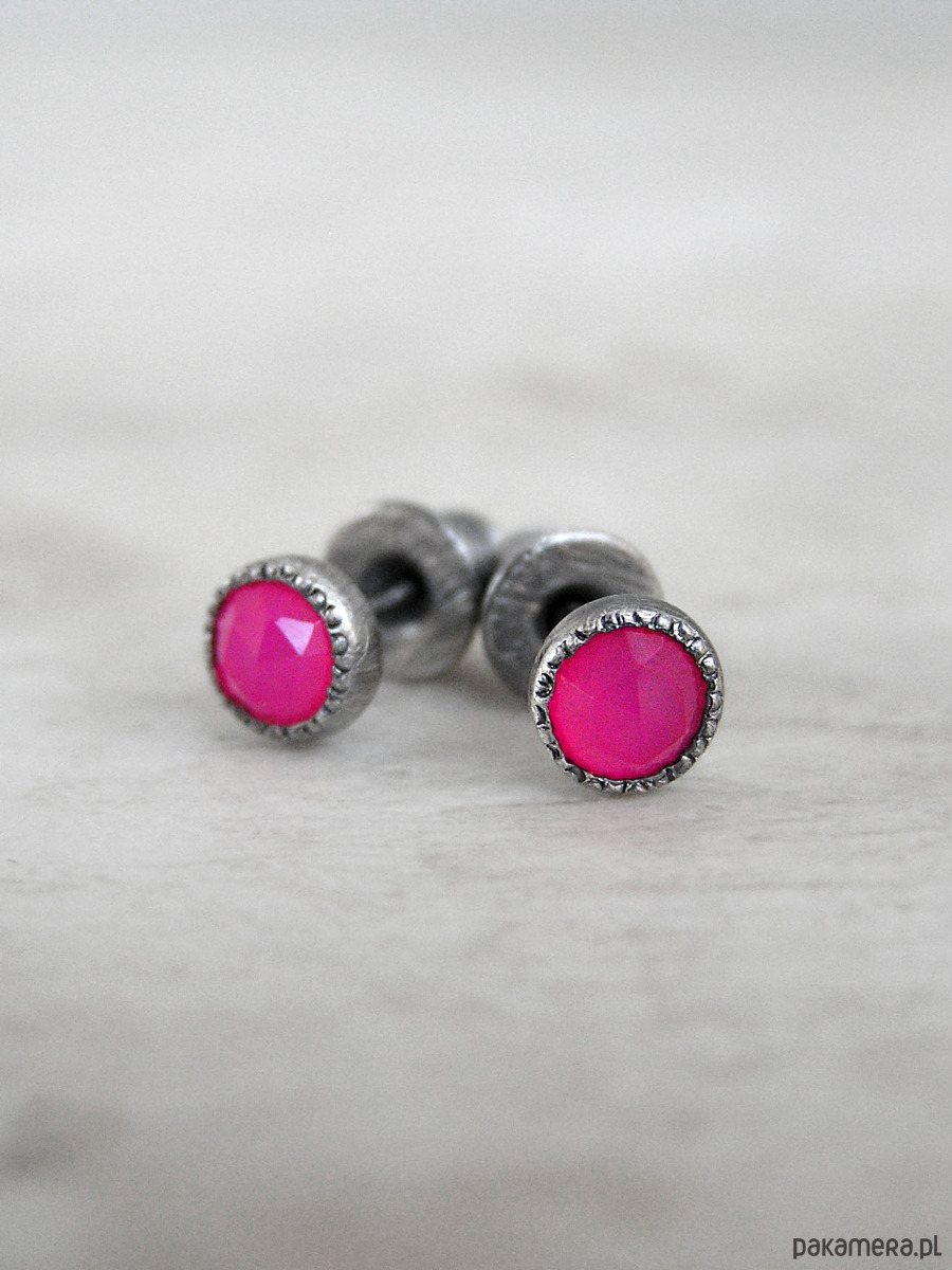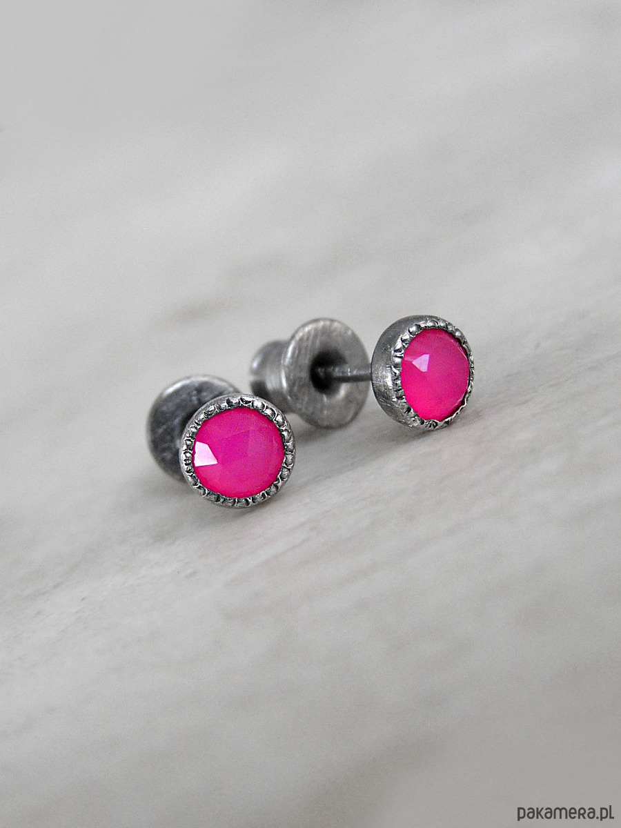 Unikatowe maleńkie kolczyki wykonane ze srebra 925 z fasetowanymi agatami w kolorze fuksji.