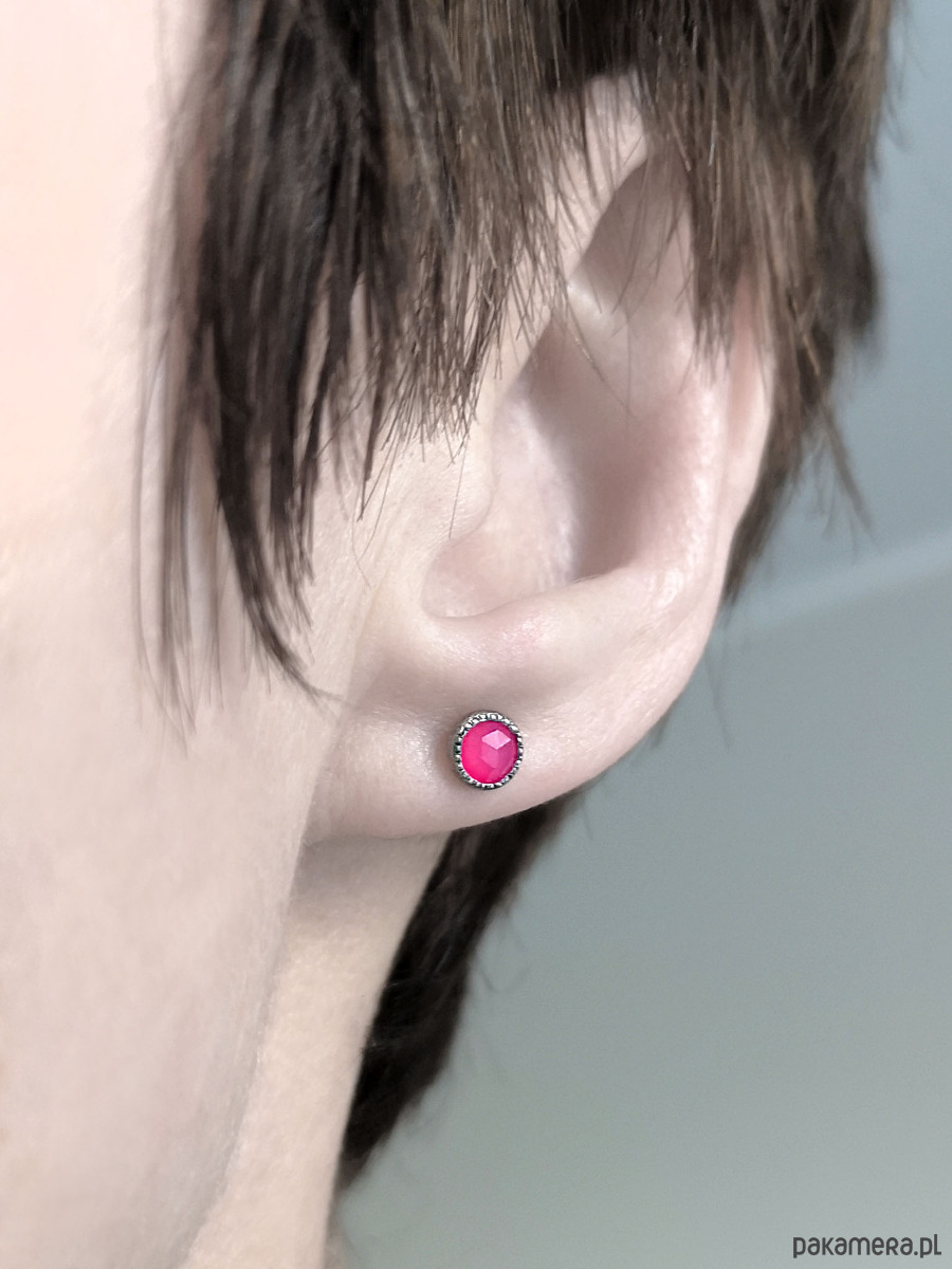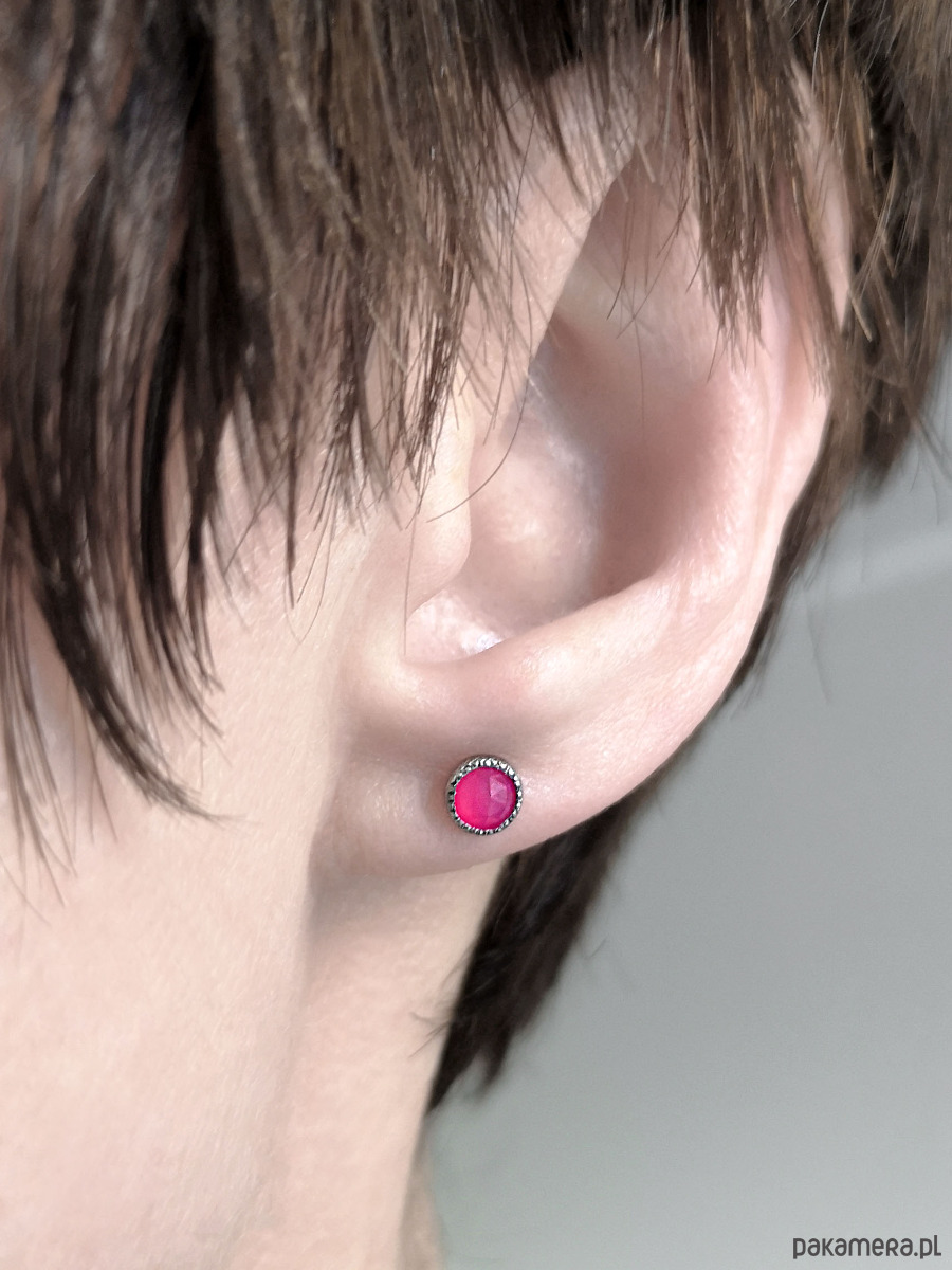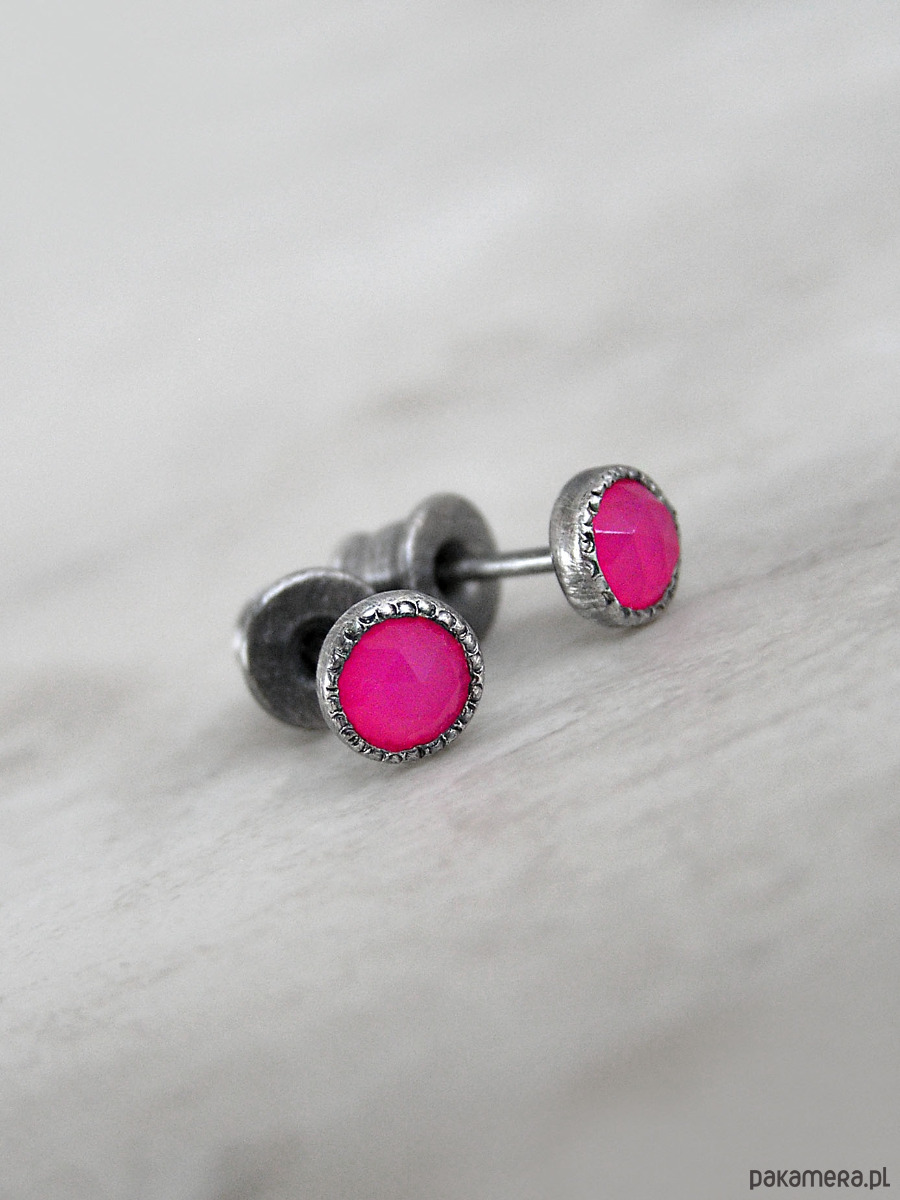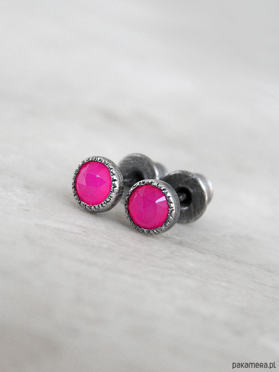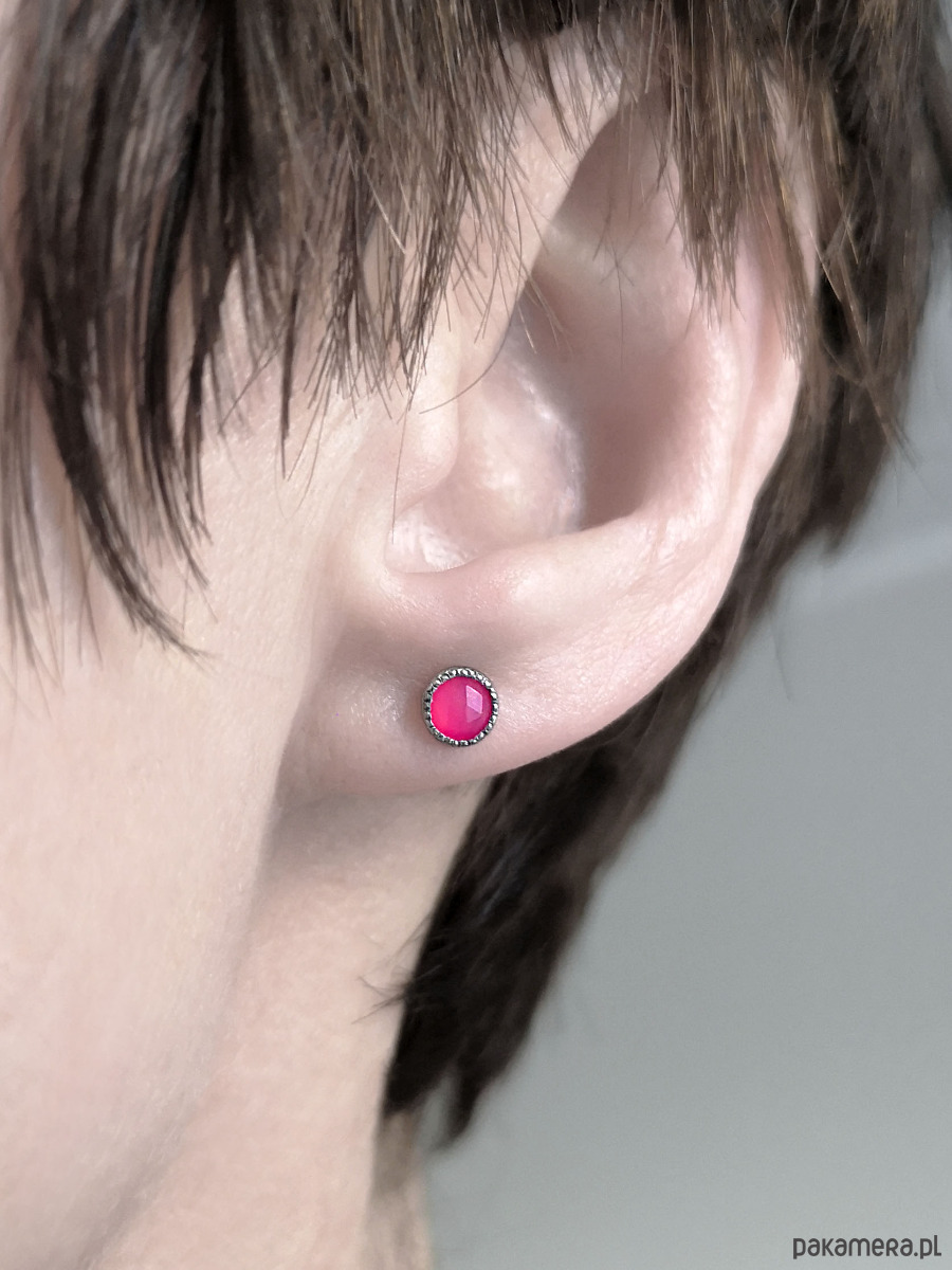 Unikatowe maleńkie kolczyki wykonane ze srebra 925 z fasetowanymi agatami w kolorze fuksji.