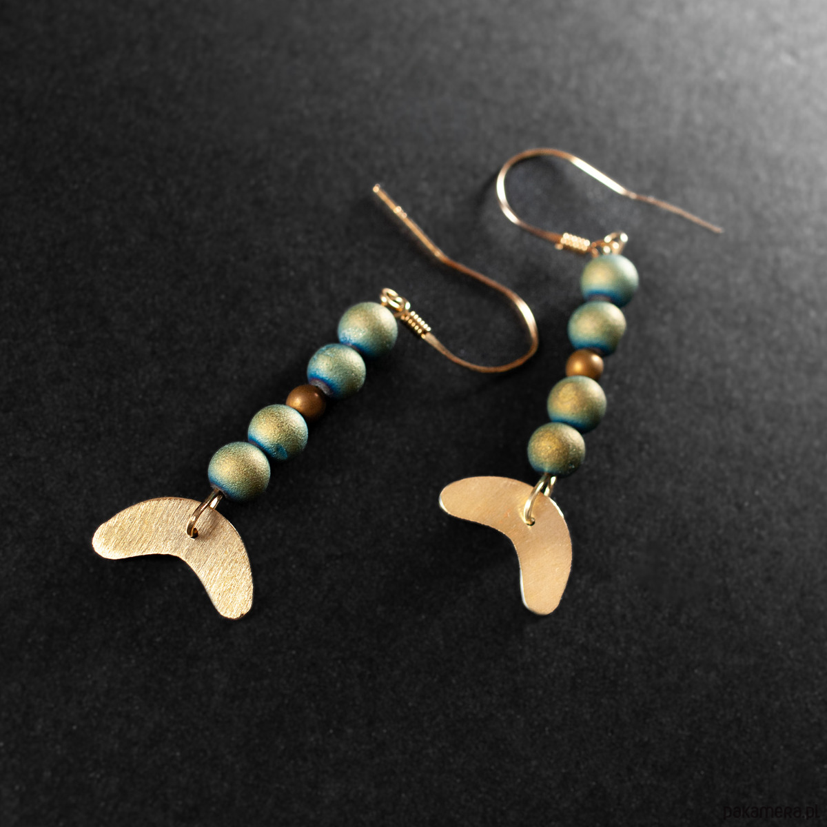 Kolczyki z agatem, hematytem i mosiądzem.[SK18]