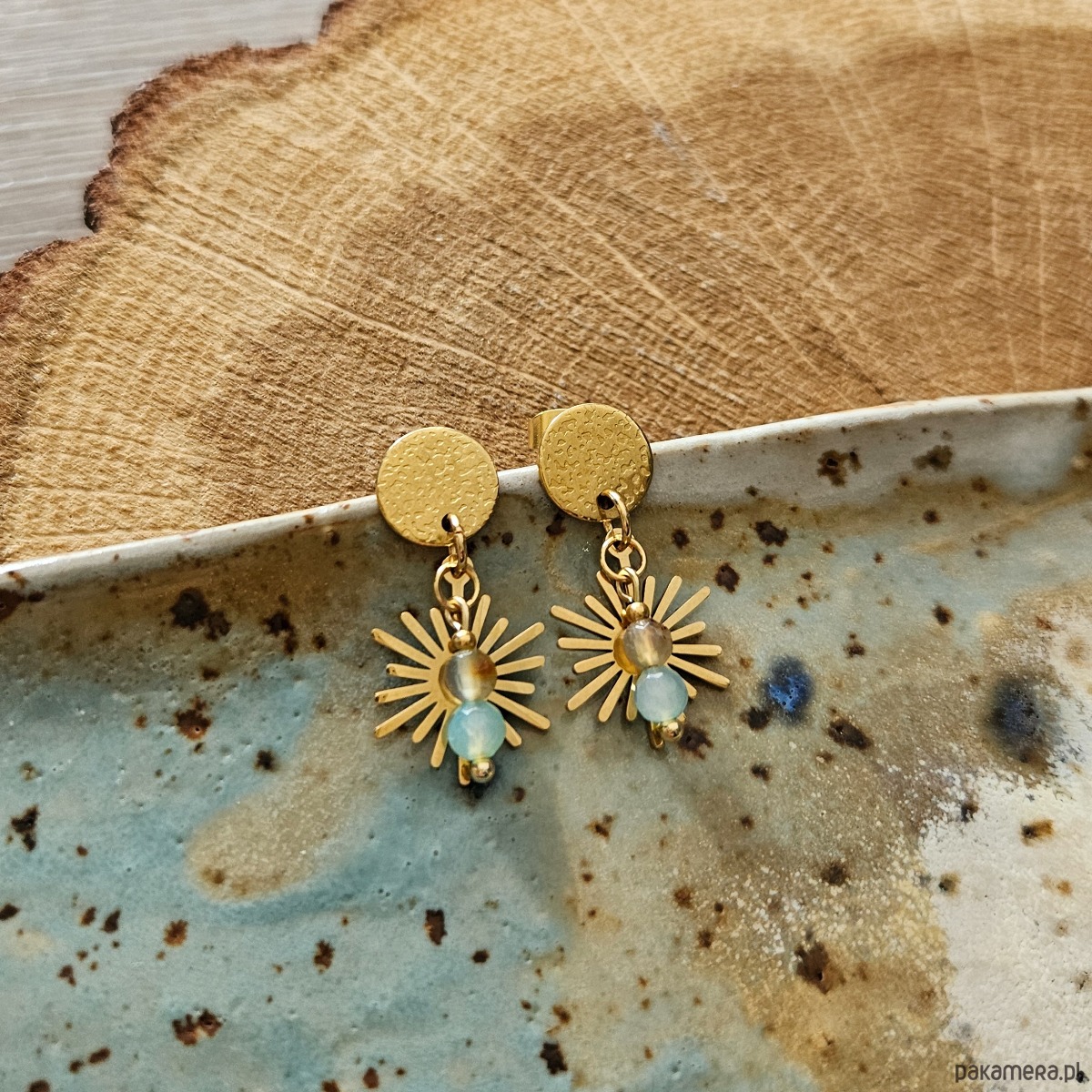 Kolczyki z agatem i zawieszką słońce