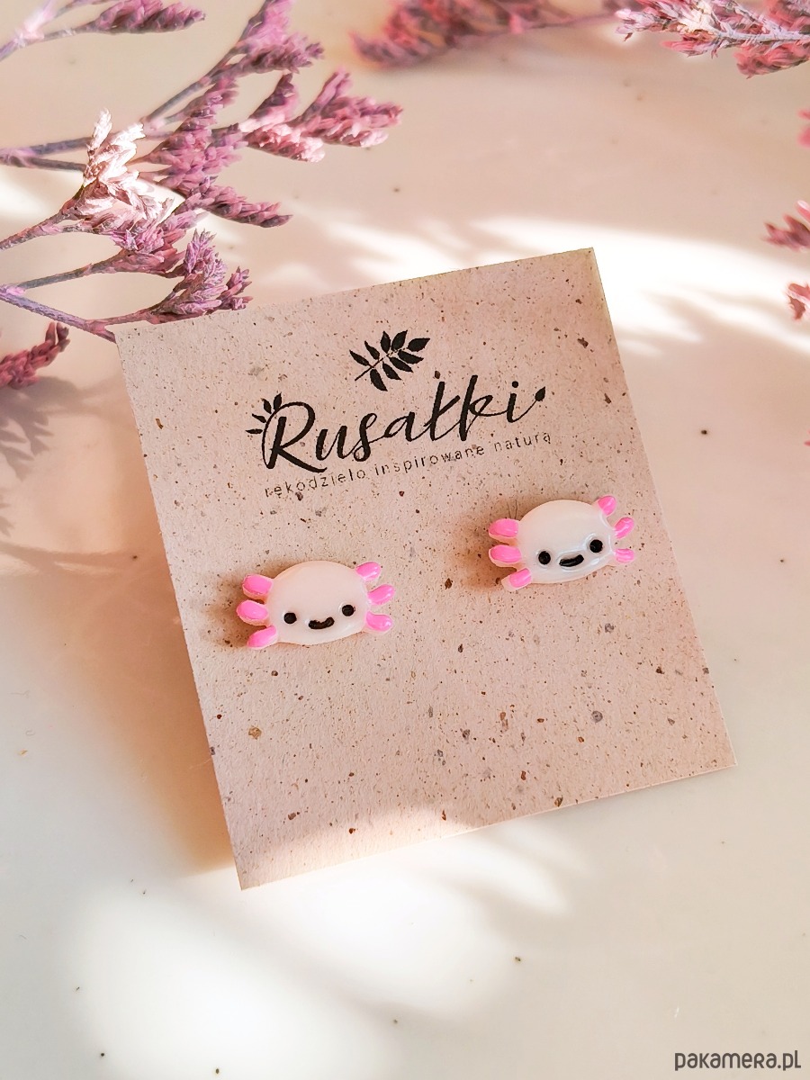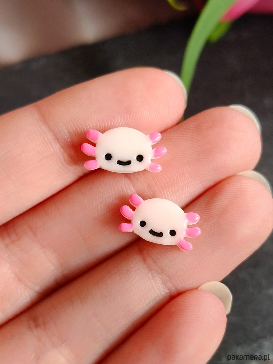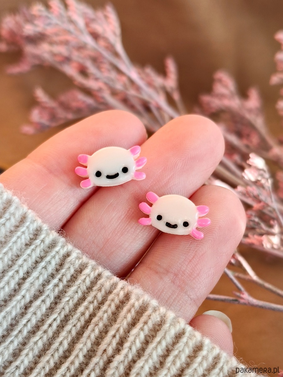Kolczyki z aksolotlem, urocza kolorowa biżuteria kawaii ze zwierzęciem
